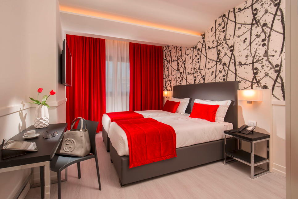 Établi dans le quartier Esposizione Universale Di Roma, à proximité du stade PalaLottomatica, du Nouveau Centre des Congrès de Rome et d’autres sites culturels intéressants tels que le Musée de la Civilisation romaine, le Musée de la Préhistoire et la Basilique Saint-Paul-Hors-Les-Murs, l’hôtel American Palace EUR est un bon point de chute pour explorer la Ville Éternelle. Pour rejoindre aisément le centre-ville et d’autres lieux incontournables, on peut également profiter de la proximité d’une station de métro et d’arrêts de bus. Vous séjournerez dans des chambres bien équipées et de style moderne dans les coloris blanc, noir et rouge. Sur place, on peut apprécier des commodités hôtelières qui rendront votre séjour plus agréable, dont un restaurant servant des spécialités italiennes, une salle de fitness ainsi qu’un joli jardin pour boire un verre lors des chaudes soirées d’été.