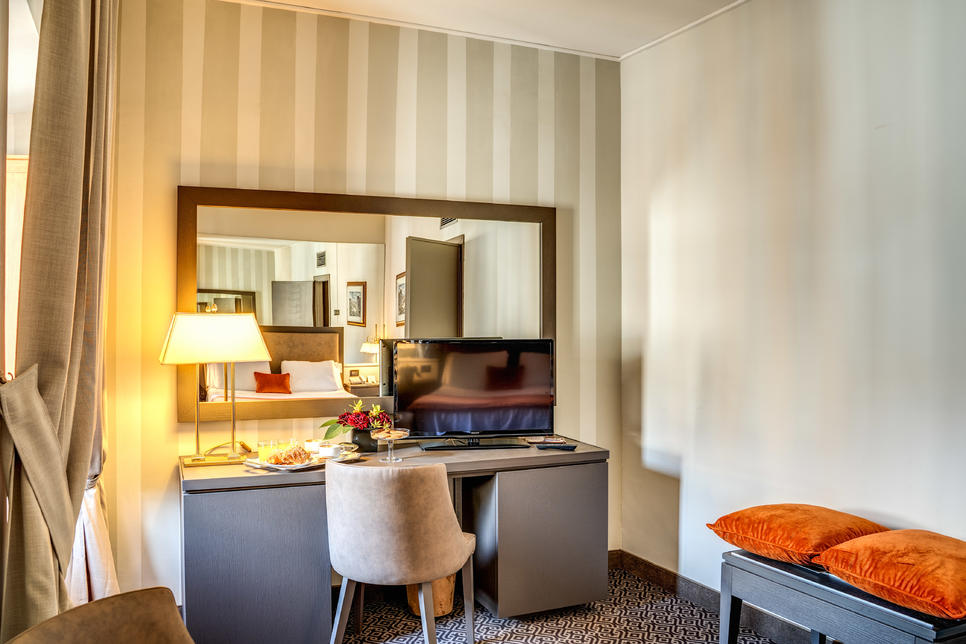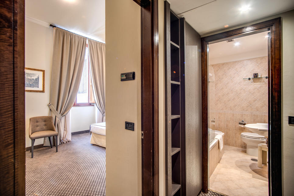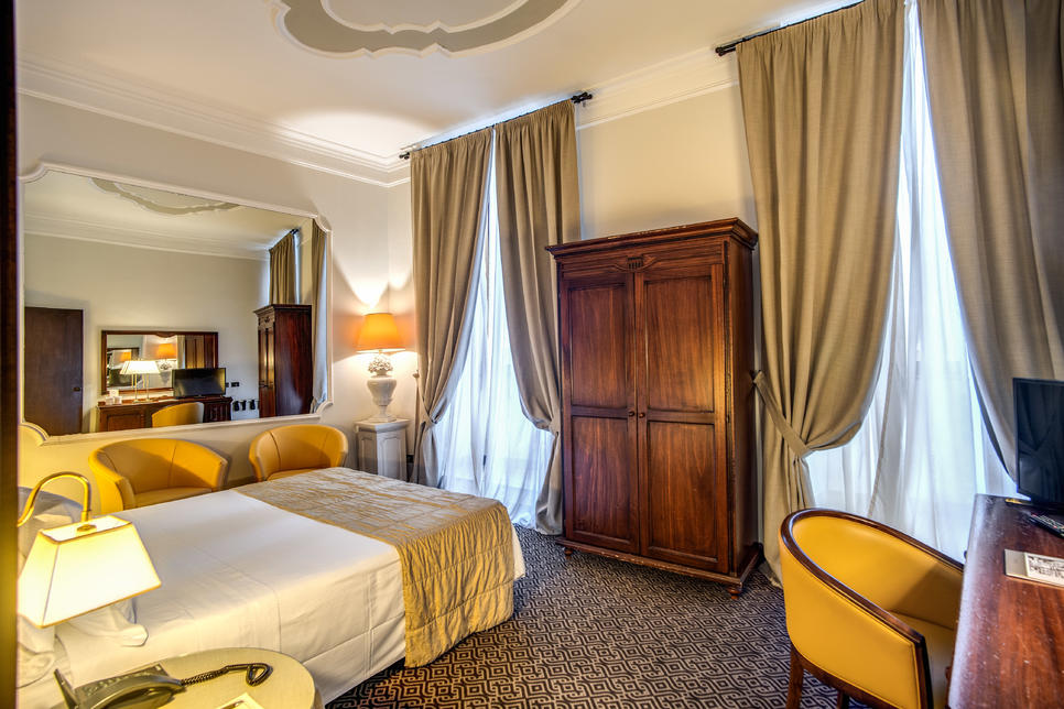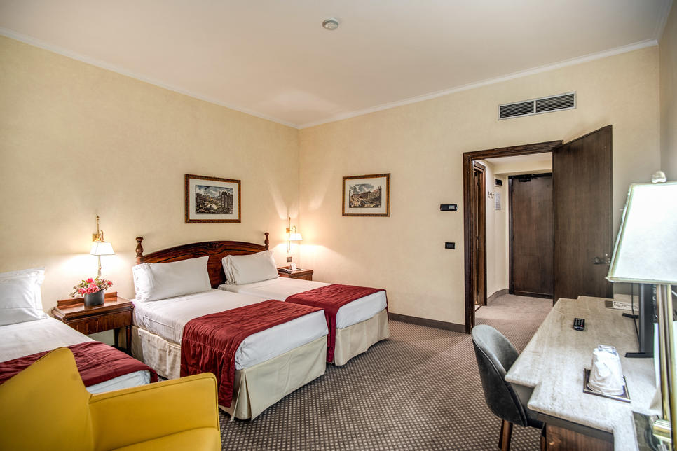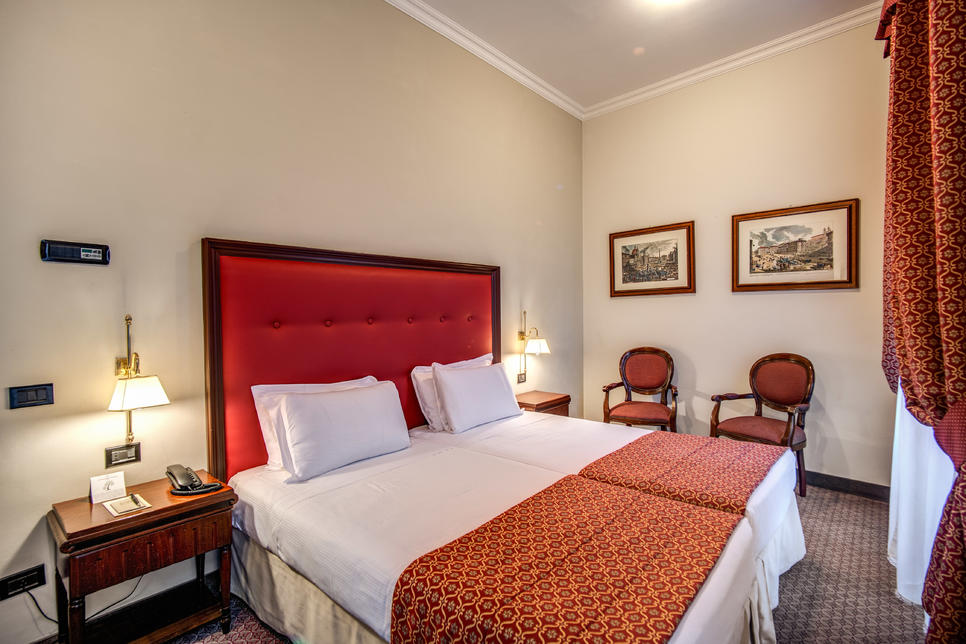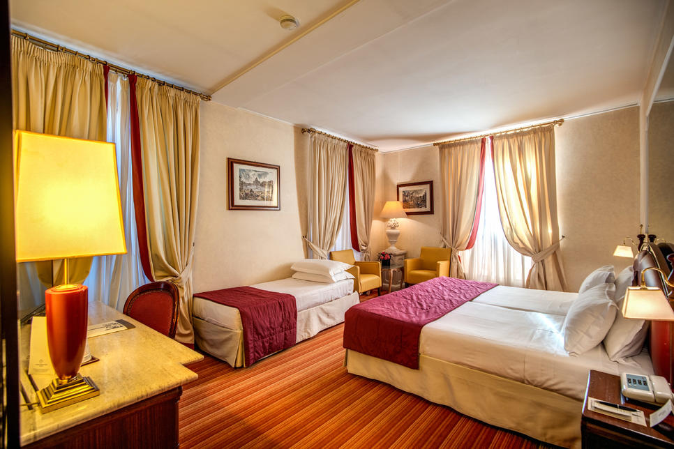 Quatre étoiles, il a la chance de dominer du haut de sa terrasse la capitale, le défaut (en partie voulu, et commun à de nombreux hôtels romains) est de ne pas avoir de restaurant.