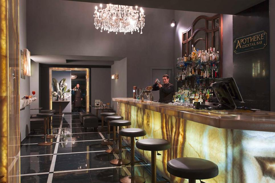 3 bars dont bar à cocktails : "Apotheke", skybar : "Piram Martini Terrace Roof", snack-bar