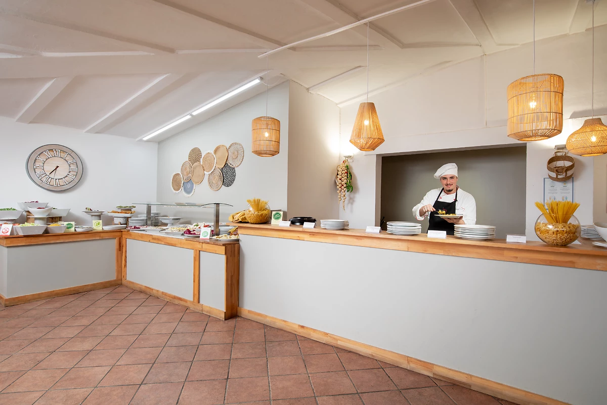 2 restaurants, chacun dédié à un type de chambre (classique ou deluxe), servent une cuisine internationale sous forme de buffet. Un restaurant à la carte est à votre disposition pour les déjeuners et dîners (avec supplément). Jusqu’à 3 bars, selon leur ouverture saisonnière, proposent des en-cas légers et une large sélection de boissons.