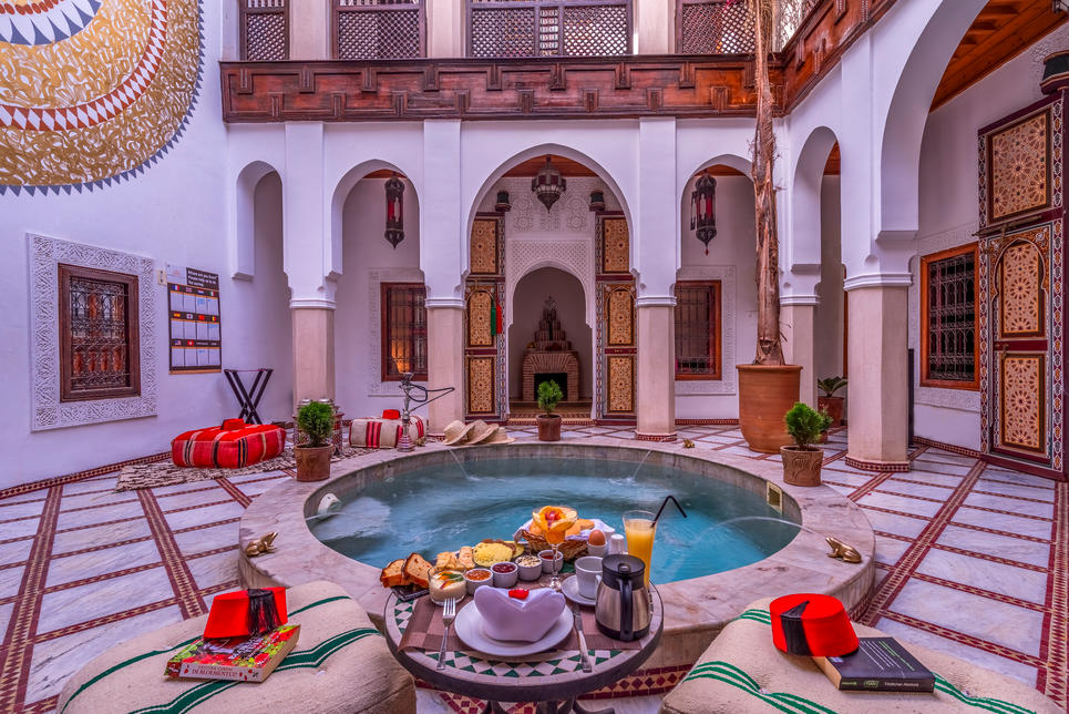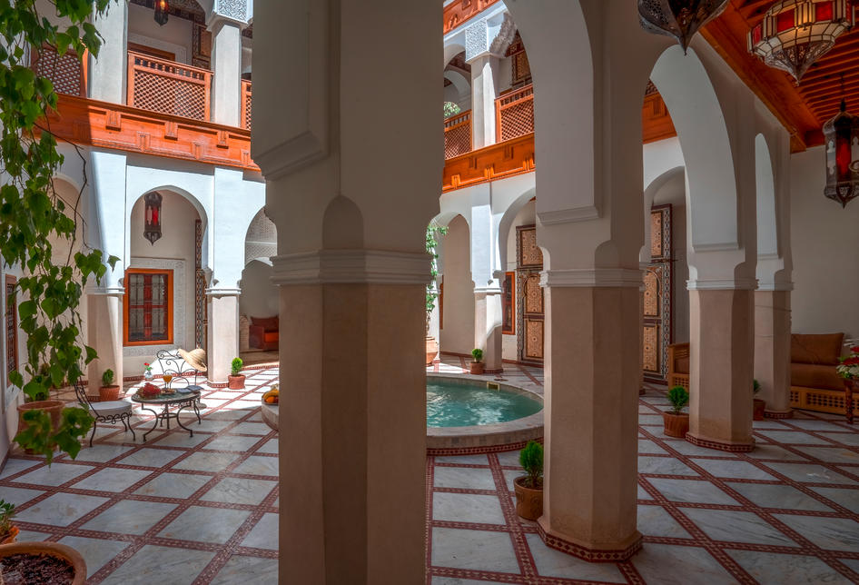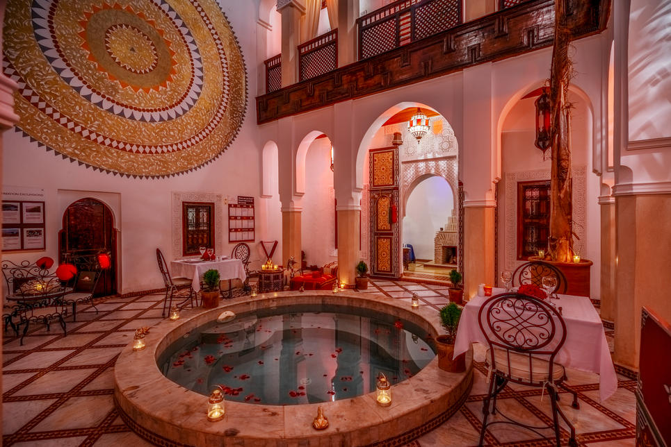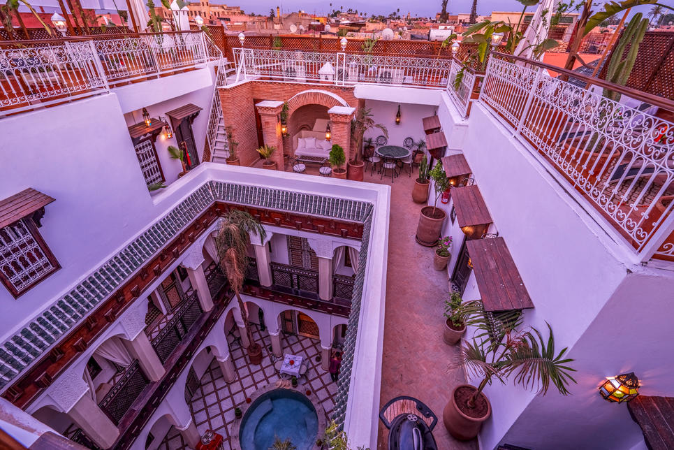 Le Riad Safran et Cannelle est l’adresse parfaite pour vous immerger pleinement dans l’ambiance de Marrakech. Situé à seulement deux minutes à pied de la célèbre place Jemaa El Fna, c’est le point de départ idéal pour explorer la Ville Ocre. Ce riad authentique avec son patio, ses salons, ses éléments de décoration typiques et sa terrasse sur le toit offre un cadre enchanteur pour vous reposer après vos visites dans les souks. Afin de prolonger les instants de relaxation, rendez-vous au spa pour profiter d’un soin dépaysant dont seuls les Marocains ont le secret !