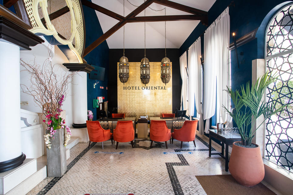 Établi en bord de plage et quelques pas du centre de Portimão, l’AP Oriental Beach accueille exclusivement les vacanciers de plus de 16 ans. Il présente une architecture atypique alliant design et influences orientales, un style que l’on perçoit dès le hall d’entrée. Celui-ci est aménagé autour d’un bassin tout en longueur qui sépare différents petits salons agréables et aménagés selon la même ligne ornementale. À l’extérieur, vous pourrez profiter d’espaces de détente à l’ombre des palmiers, sur une grande pelouse faisant face à la Praia da Rocha, l’une des plages emblématiques de l’Algarve qui est bordée par de majestueuses falaises.