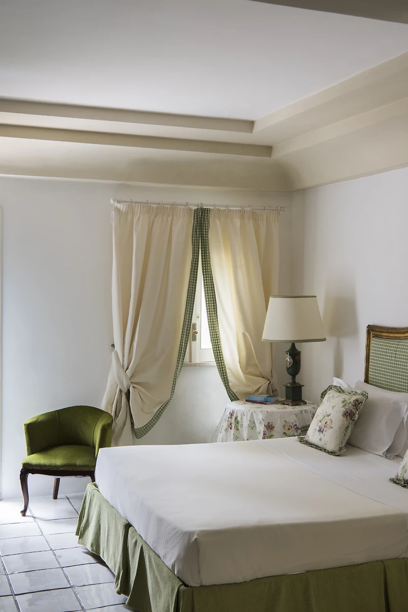 40 chambres réparties sur 2 niveaux déclinent un style champêtre apulien noble. La plupart dispose de volets persiennes, plafonds décoré et sols d’époque patiné par le temps ainsi que tout le confort moderne dont la climatisation, une bonne insonorisation et le WFi, cafetière expresso à partir des chambres supérieures et plateau de courtoisie avec bouilloire.