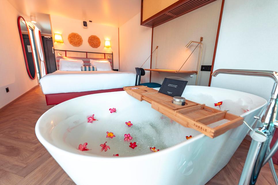 Un petit bijou posé sur une plage de rêve, recommandé pour une parenthèse bien-être avec votre moitié.