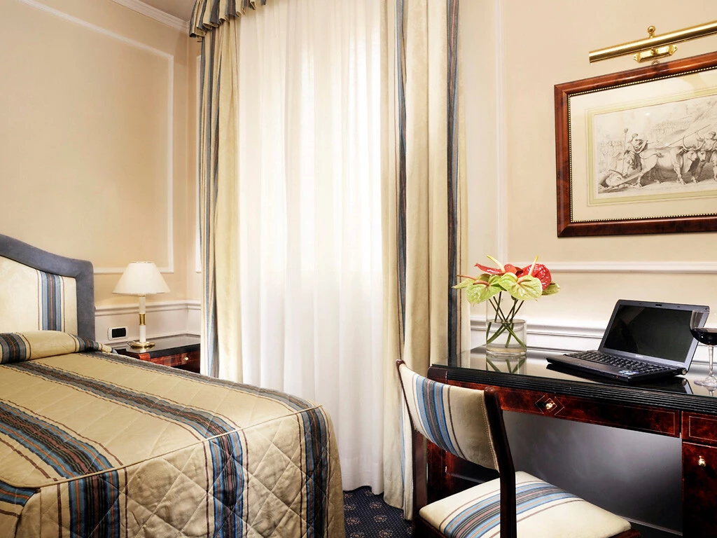 - Chambre simple : D’une superficie de 13 m², ces chambres sont décorées et meublés dans un style florentin, avec notamment un lit simple et un bureau.