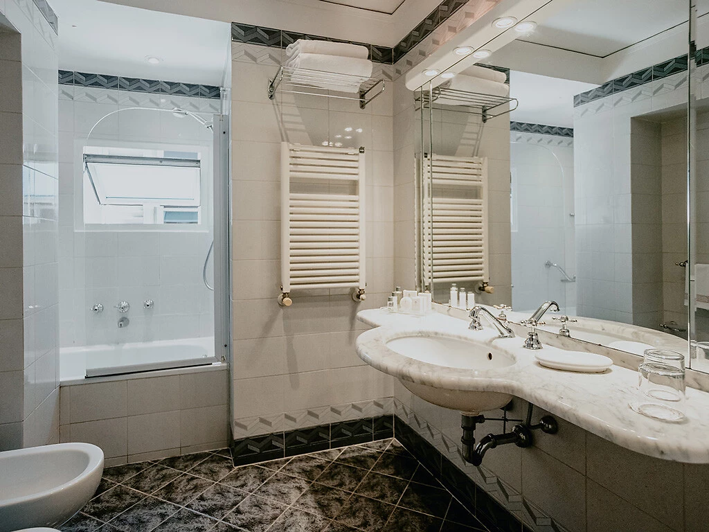 - Suite junior : D’une superficie de 40 m², cette suite junior est spacieuse et dispose d'un confortable coin salon. Certaines suites offrent une vue sur la Via Tornabuoni ou sur l'église Saints-Michel-et-Gaétan.