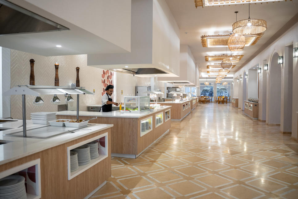 C'est une équipe attentionnée qui vous reçoit dans un cadre agréable alliant modernité et traditions, autour d'un programme d'animations riche et d'une restauration variée. Bordant une jolie plage de sable qui lui est propre, l'hôtel met en avant de vastes espaces extérieurs bien aménagés et un bel ensemble de piscines. Entre le bassin pour enfants avec jeux aquatiques et toboggans, le petit parc aquatique et les belles terrasses solarium, chacun y trouvera son compte et pourra se relaxer au soleil ou s’amuser dans l’eau. De fabuleux moments de convivialité vous attendent !