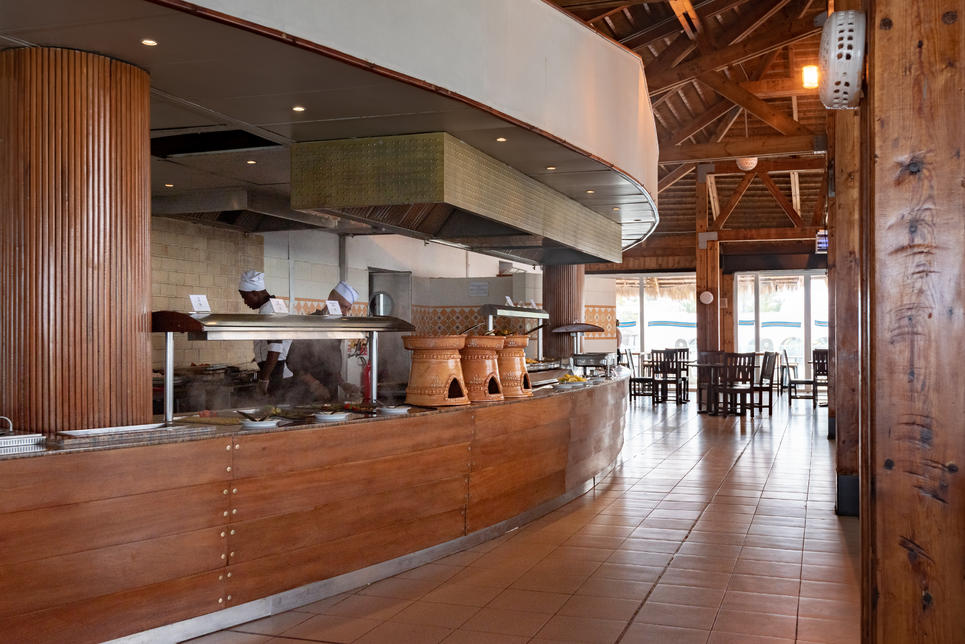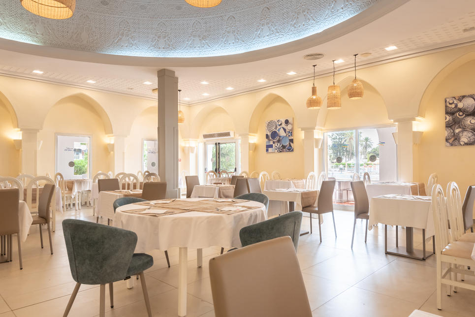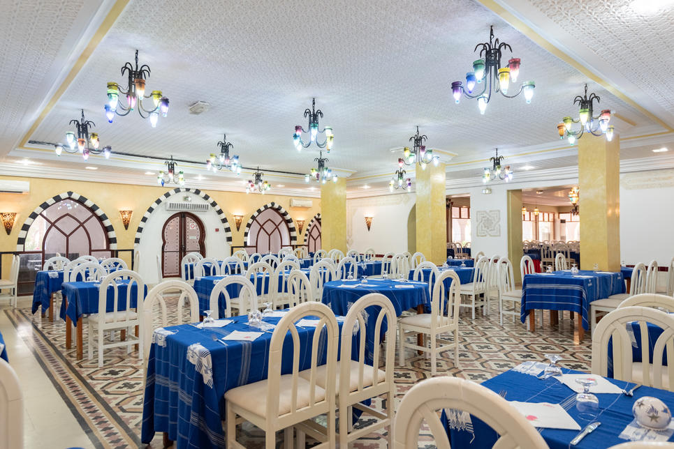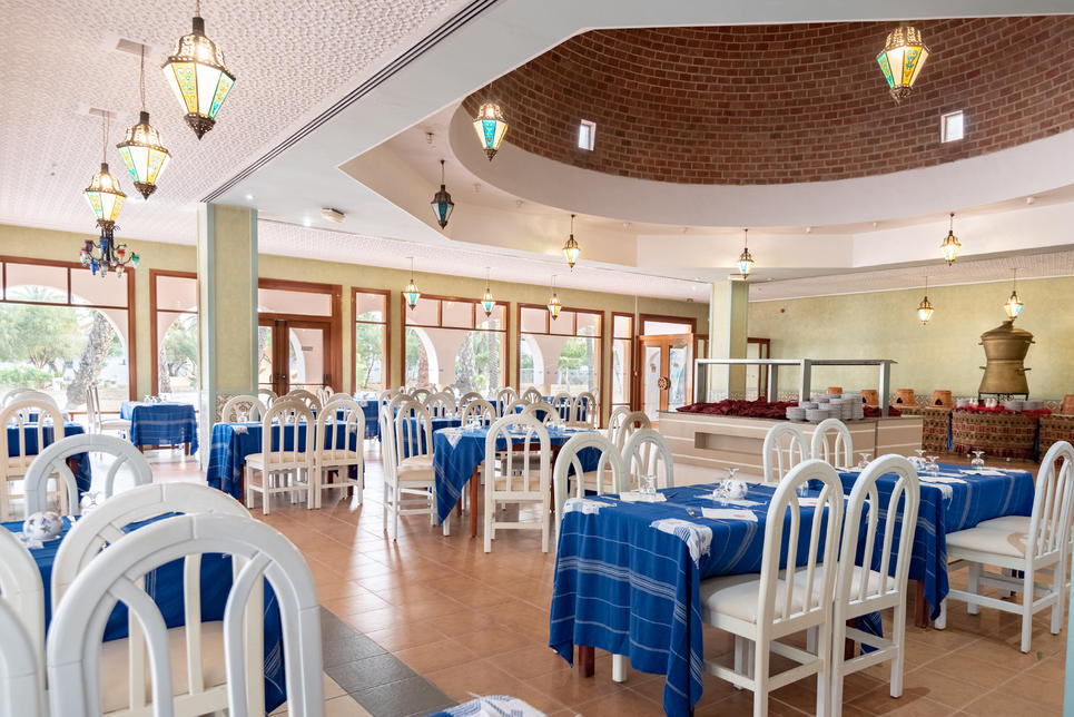 2 restaurants buffet : "Bougainvillier" cuisine tunisienne (pour dîner, du 15.06 au 30.09 , sur réservation), "Espadon", show-cooking (pour déjeuner, pour dîner, du 15.06 au 30.09 , sur réservation)