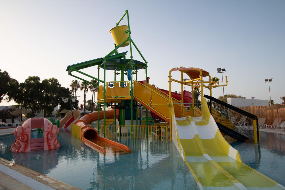 Un village de vacances en bord de mer, avec un parc aquatique assurant des moments de fun pour petits et grands. Idéal pour un séjour en famille.