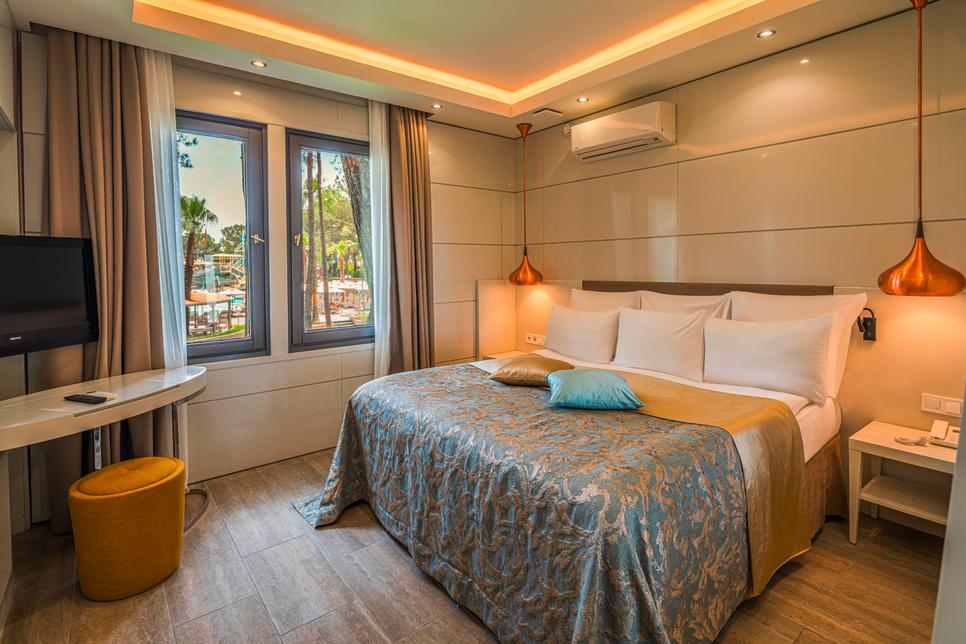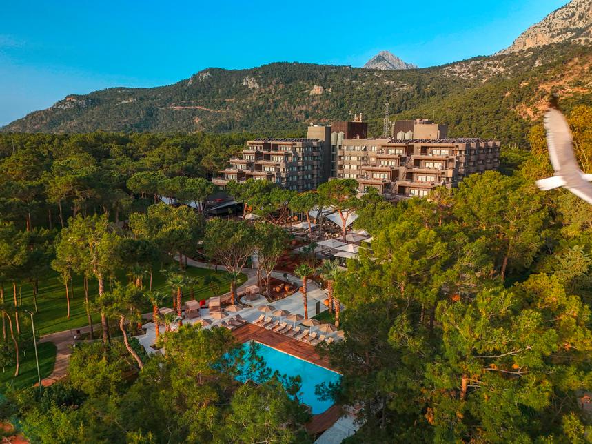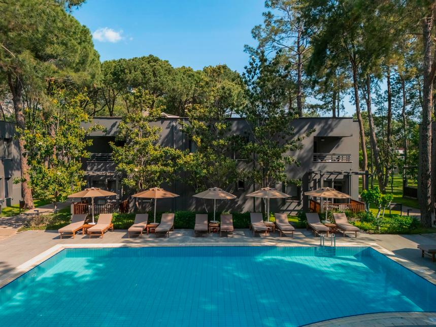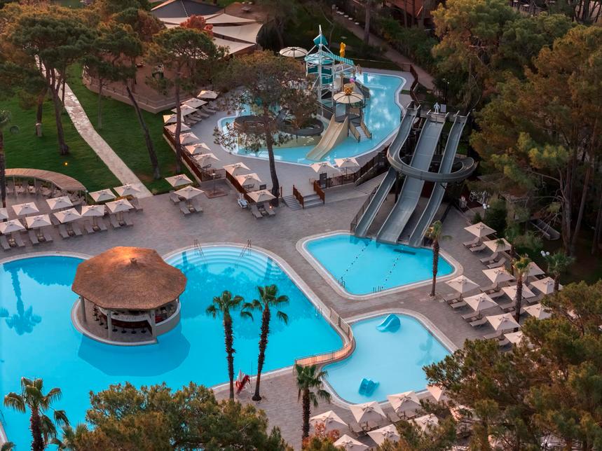 L’hôtel Balmy Foresta profite d’un environnement exceptionnel au cœur d’une immense pinède, qui laisse apparaître les montagnes du Taurus en arrière-plan. Il vous fait profiter de conditions idylliques pour vous détendre sur la plage, autour des différentes piscines ou à l’espace bien-être. Pour combler les attentes de tout un chacun, l’hôtel propose aussi des installations et services spécifiques pour les plus jeunes, à l’image du parc aquatique doté de différents toboggans. Une formule tout compris généreuse vous permet par ailleurs de vous régaler et de goûter aux saveurs d’ici et d’ailleurs dans plusieurs restaurants et bars.