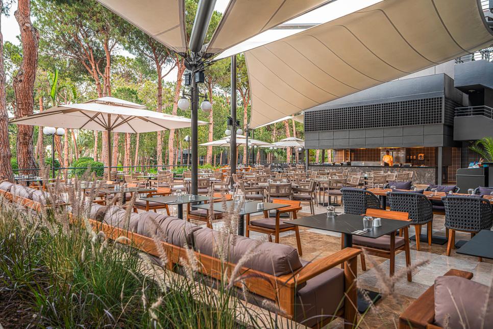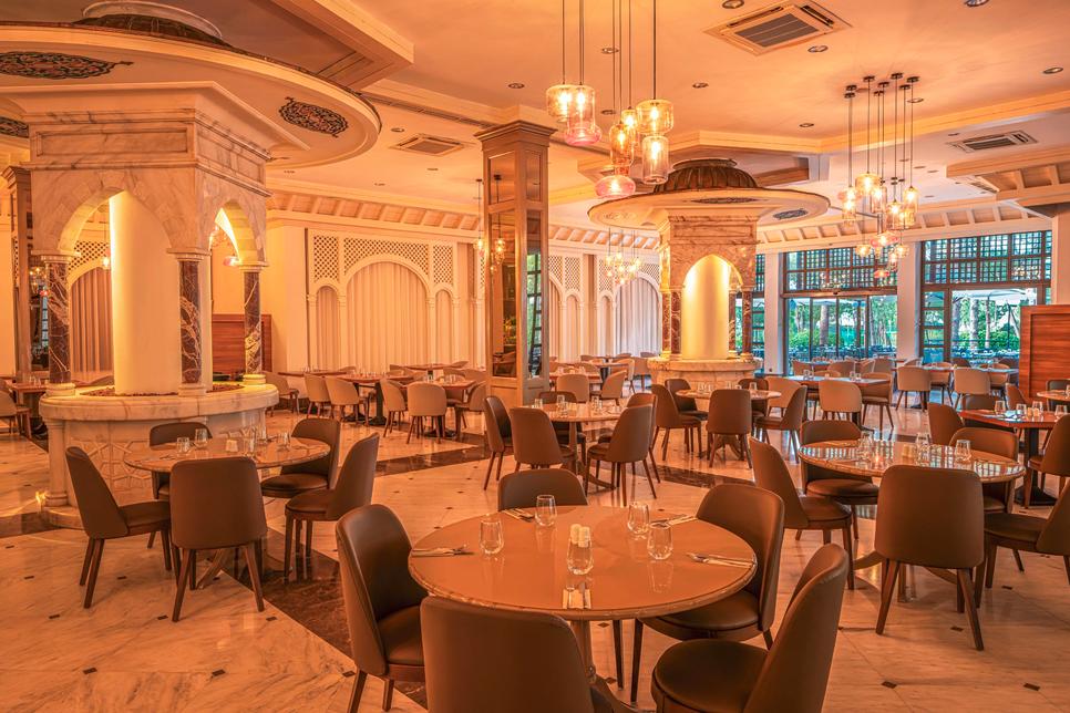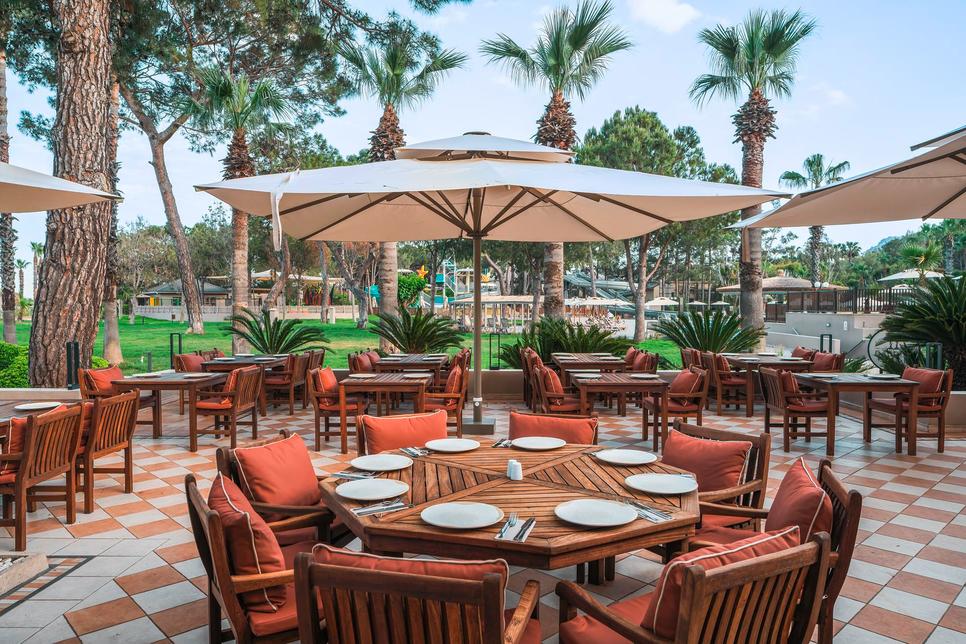 4 restaurants avec service à table : "Seasons" cuisine italienne (pour dîner, à la carte, avec terrasse, selon météo , sur réservation), "Maja Seafood " poissons/fruits de mer (pour dîner, à la carte, selon météo , sur réservation), "Duyu" cuisine turque (pour dîner, à la carte, avec terrasse, selon météo , sur réservation), "Wao" cuisine chinoise (pour dîner, à la carte, sur réservation)