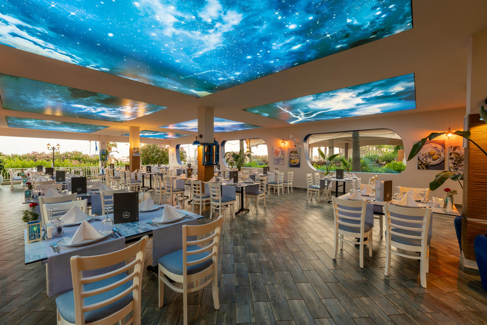 3 restaurants avec service à table : "Bellona Zargana" poissons/fruits de mer (pour dîner, à la carte, sur réservation), "Dragon" cuisine chinoise (à la carte, sur réservation), "El Torito" cuisine mexicaine (à la carte, sur réservation)