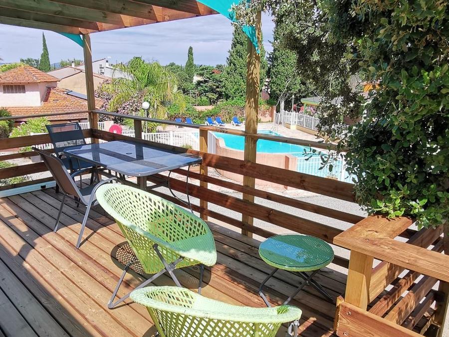- Mobil home très confortable, climatisée de 34 m2, avec terrasse bois et auvent en plus un terrasse sur le toit de 5.78 m2 et jacuzzi privé! Ces types ont une belle vue vers la mer Méditerranée.