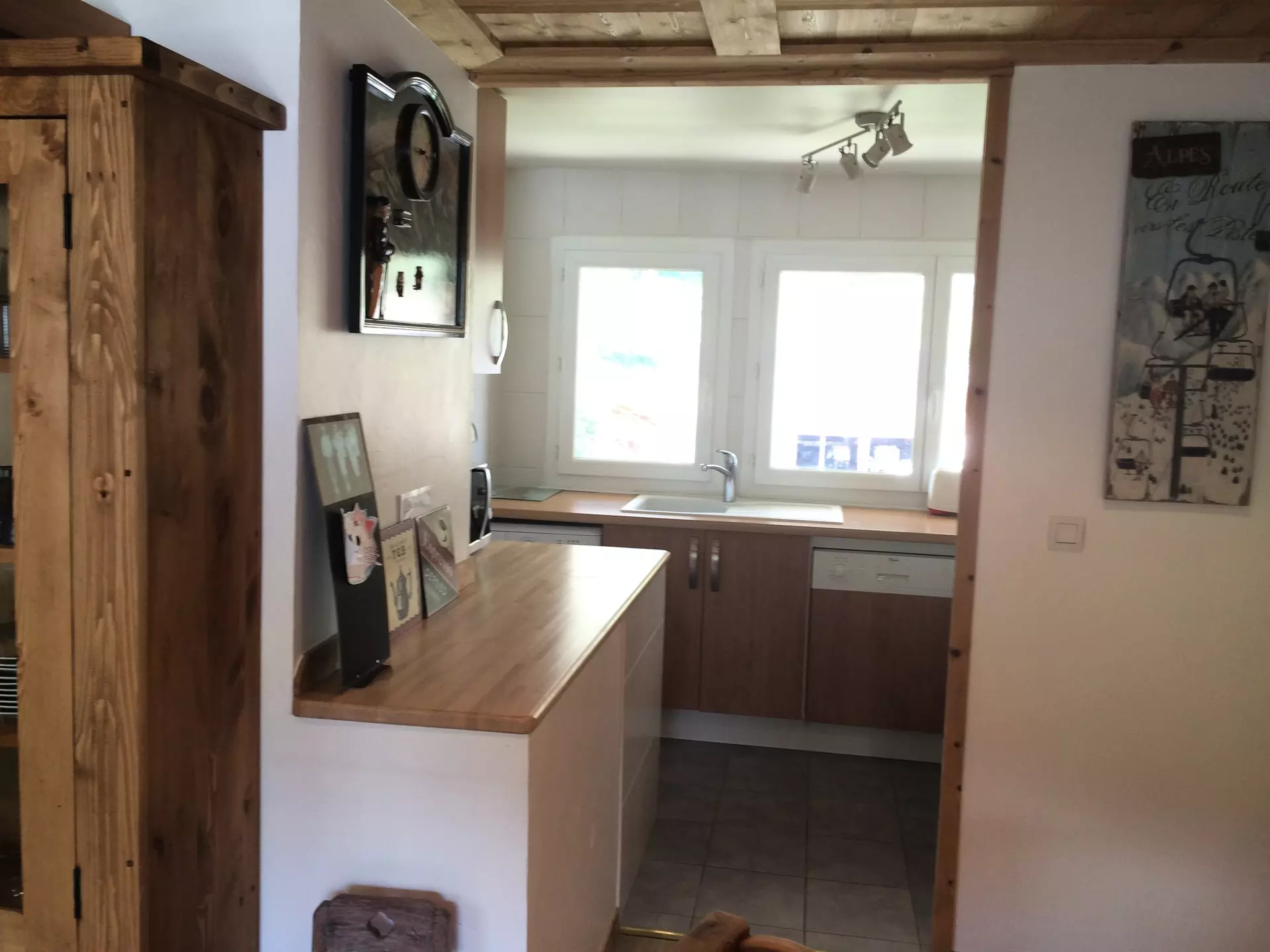 - Coin cuisine : four, plaque électrique (4 foyers), four micro-ondes, réfrigérateur, lave-vaisselle et lave-linge.