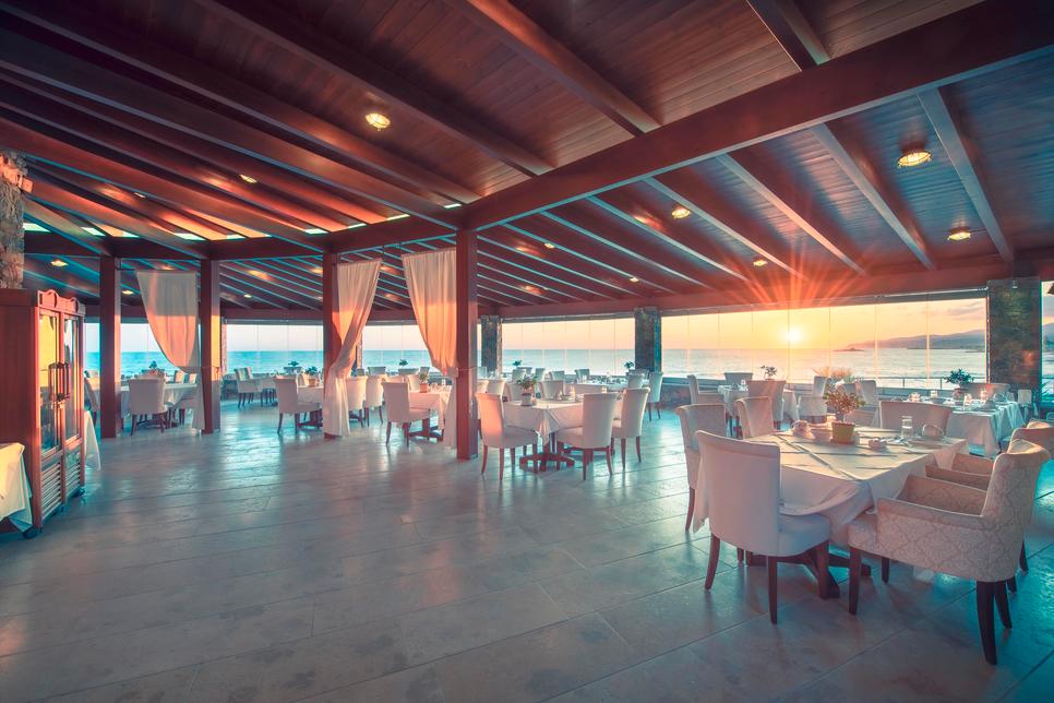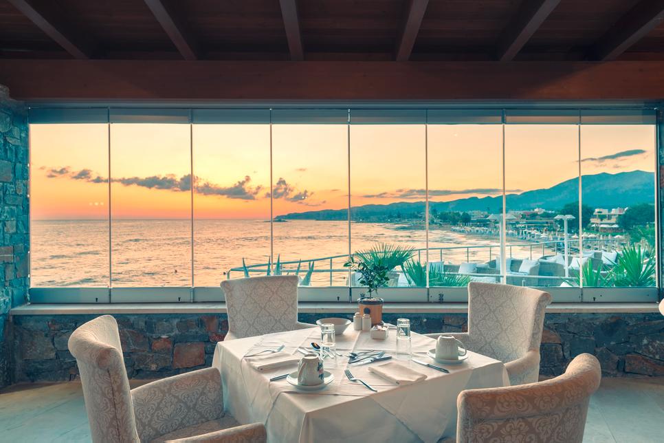 4 restaurants avec service à table : "Ayeri" cuisine méditerranéenne (pour petit-déjeuner, pour dîner, à la carte, avec vue mer), "Ammos Beach", show-cooking (pour dîner, à la carte), "Sunset" cuisine asiatique (pour dîner, à la carte, avec terrasse, vue mer, du 15.05 au 15.10 ), "En Lefko" cuisine italienne (pour dîner, à la carte, avec terrasse, vue mer)