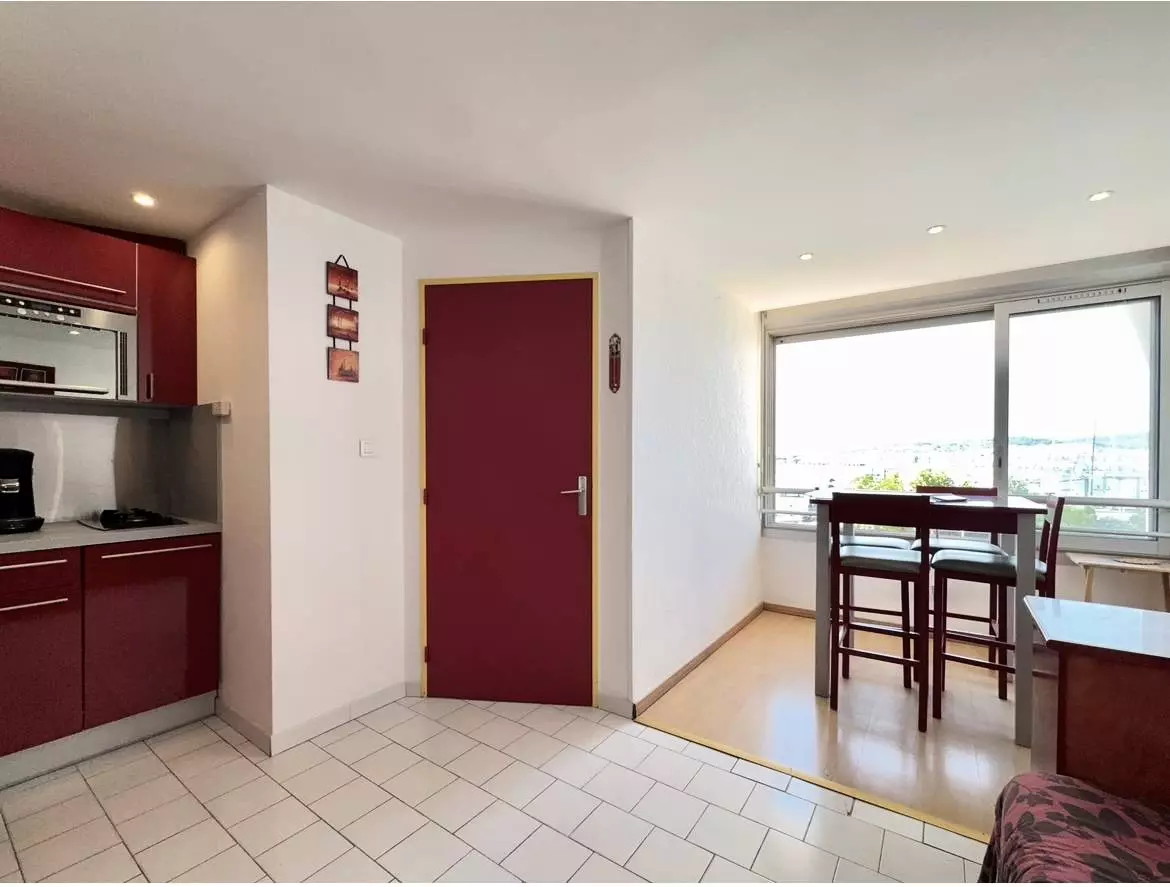CAP D'AGDE - À louer pendant la saison et à la semaine, Appartement climatisé T2 + cabine dans une résidence sécurisée au 3ème étage avec ascenseur, décoré avec goût et tout équipé, situé dans le quartier très prisé des Falaises.