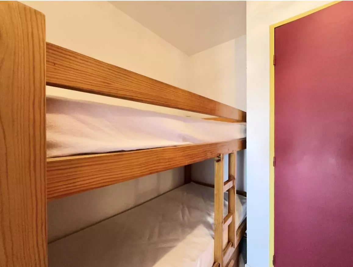 Cet appartement de vacances situé au 3ème étage avec ascenseur comprend un séjour avec canapé et une télévision, une chambre avec un lit 2 places en 140, un coin cabine avec 2 lits superposés en 90 chacun, une cuisine équipée, une salle de douche, WC séparé-Animaux non admis.