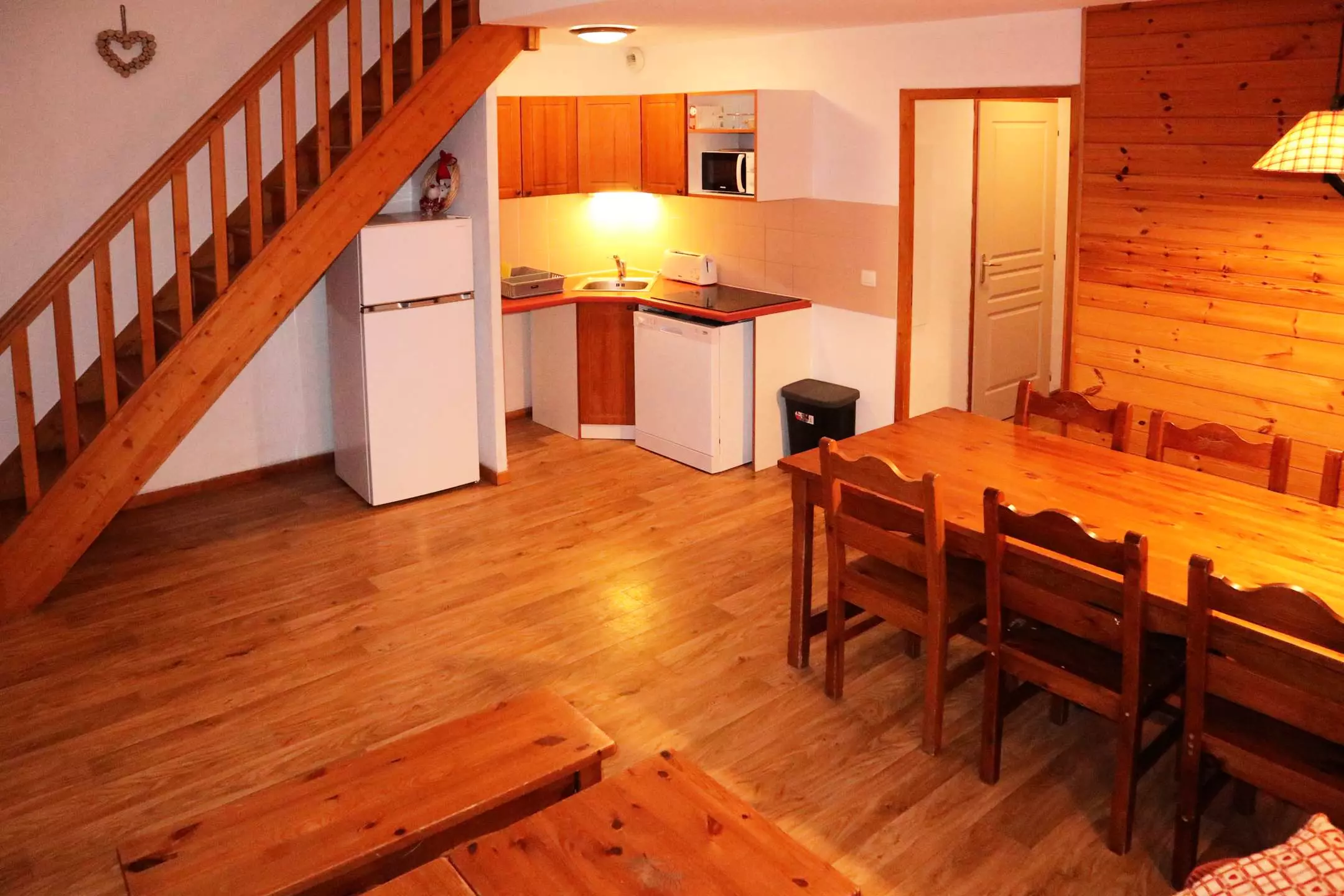 Dans une résidence de standing récente, en dernier étage avec ascenseur, très bel appartement en duplex avec double exposition, de très bon confort comprenant : entrée, salle d'eau avec WC, chambre 1 lit 2 places, grand séjour avec 2 lits gigogne 1 place, cuisine ouverte, balcon, escaliers bois menant à l'étage, coin montagne 2 lits superposés 1 place avec fenêtre, une chambre 1 lit 2 places et 1 lit 1 place avec balcon, salle de bains, WC. Box à skis.