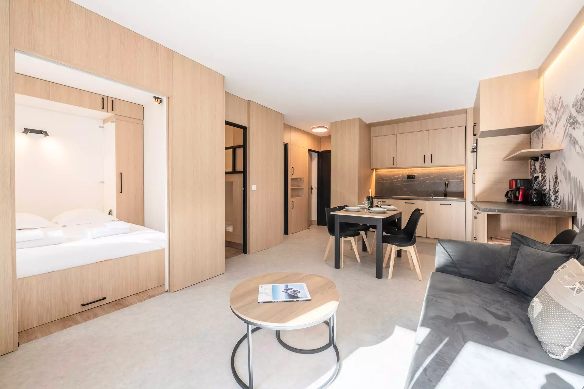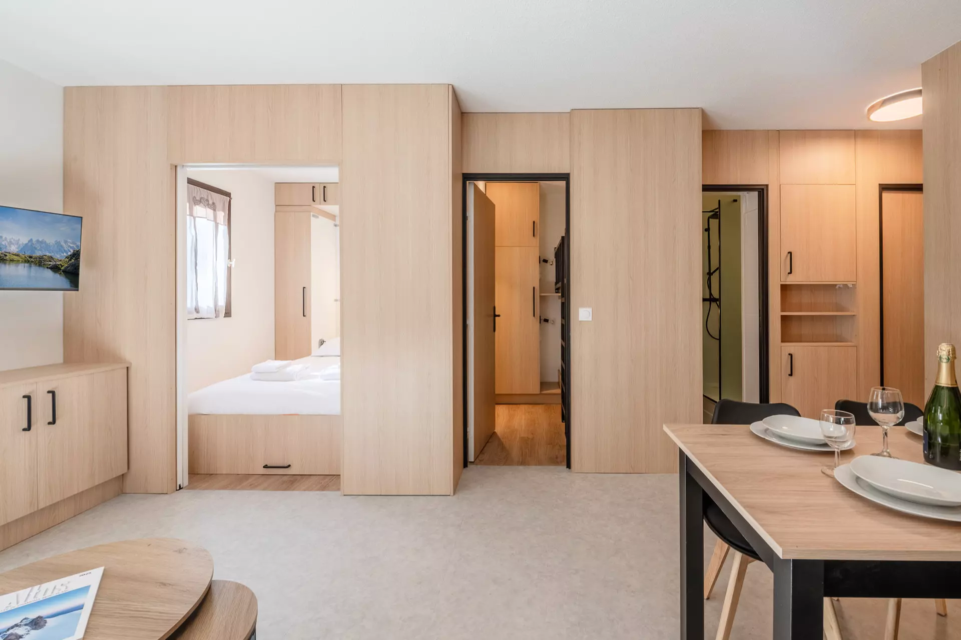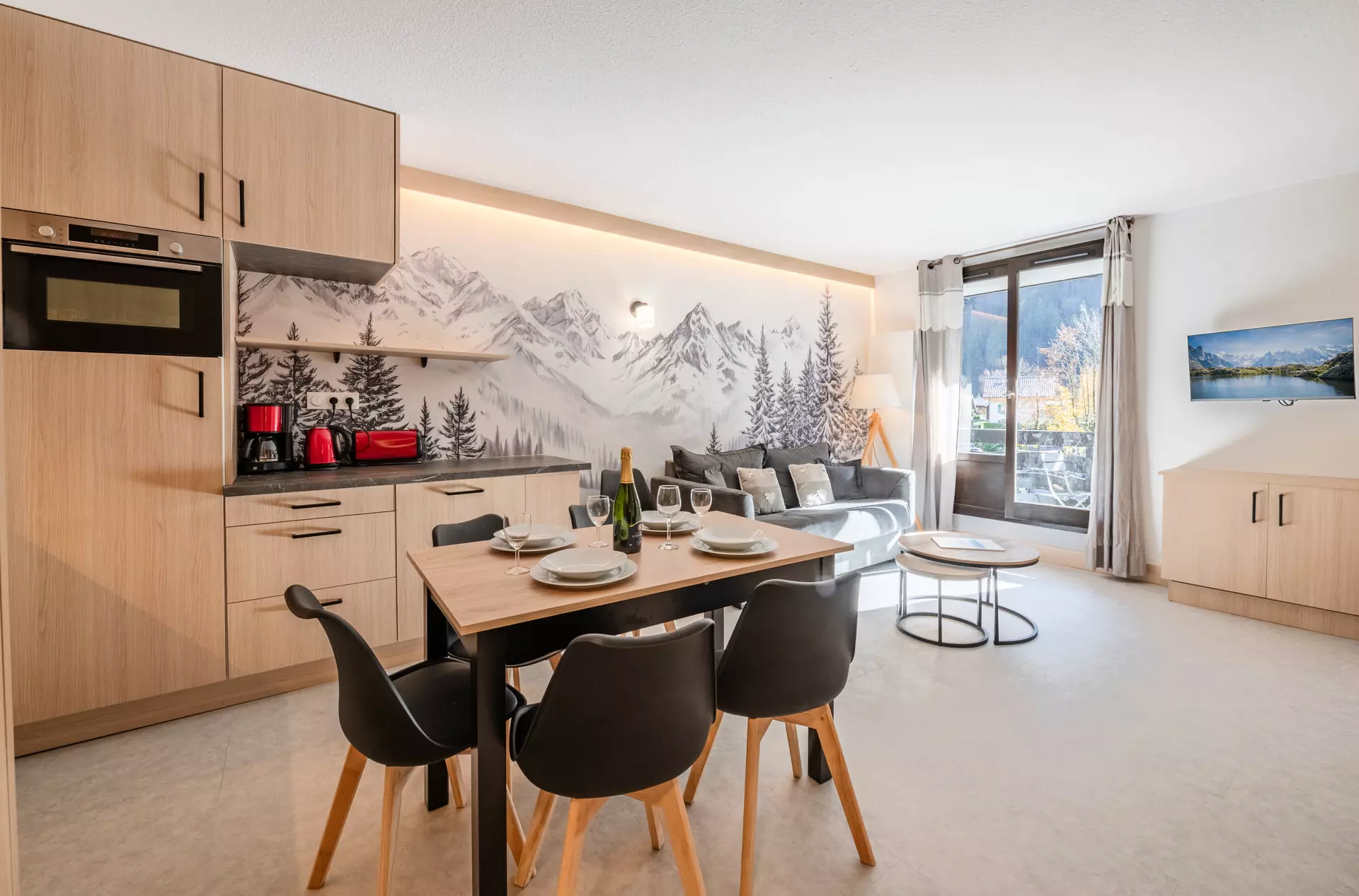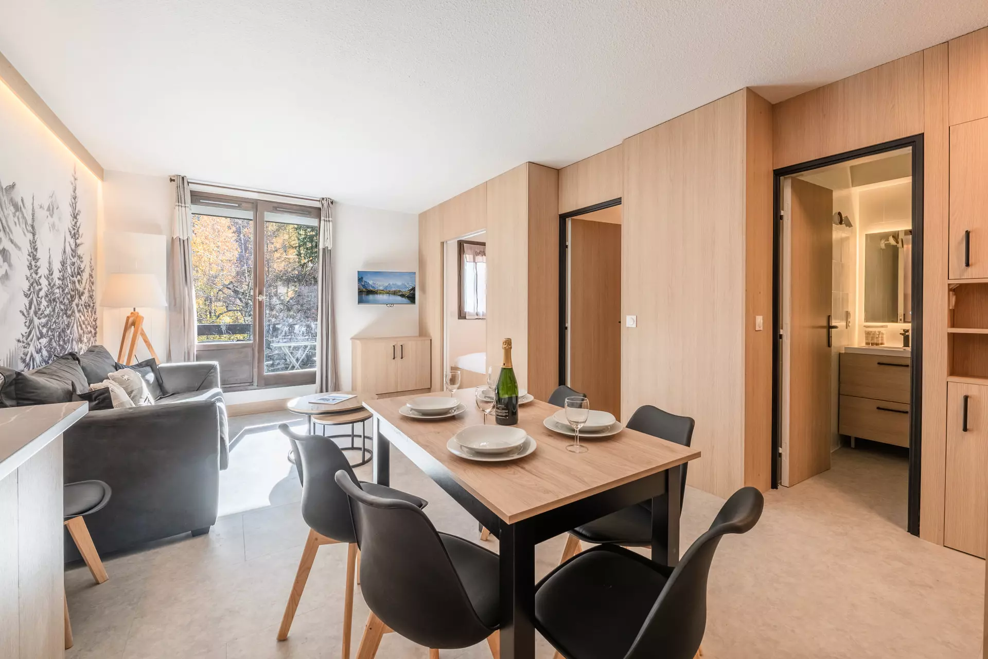 Ce bel appartement de 36m² peut accueillir 4 personnes dans ses 2 chambres. Au 1er étage d'une résidence avec ascenseur il est situé dans le quartier de Chamonix Sud, à 3 minutes à pied de la zone piétonne.