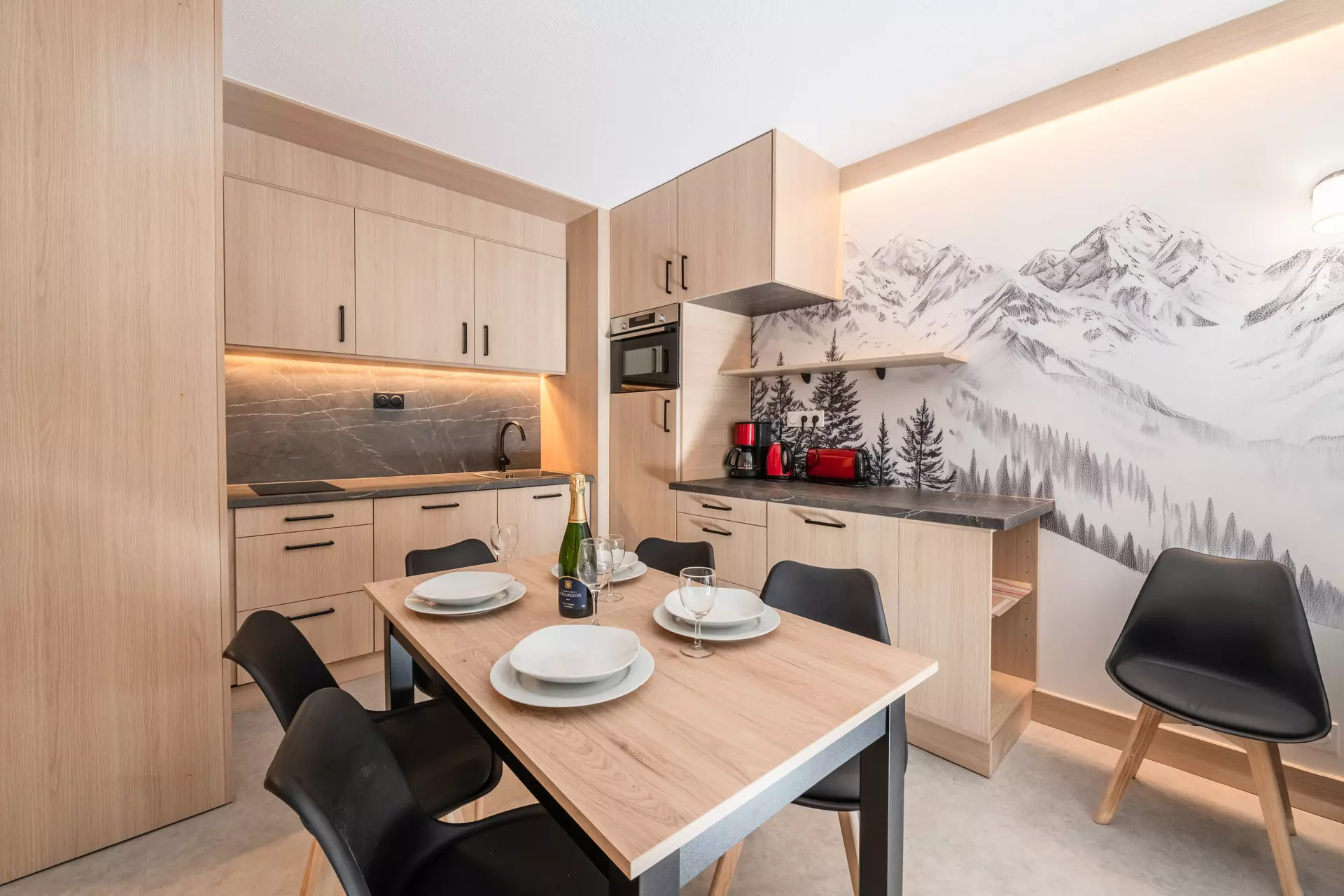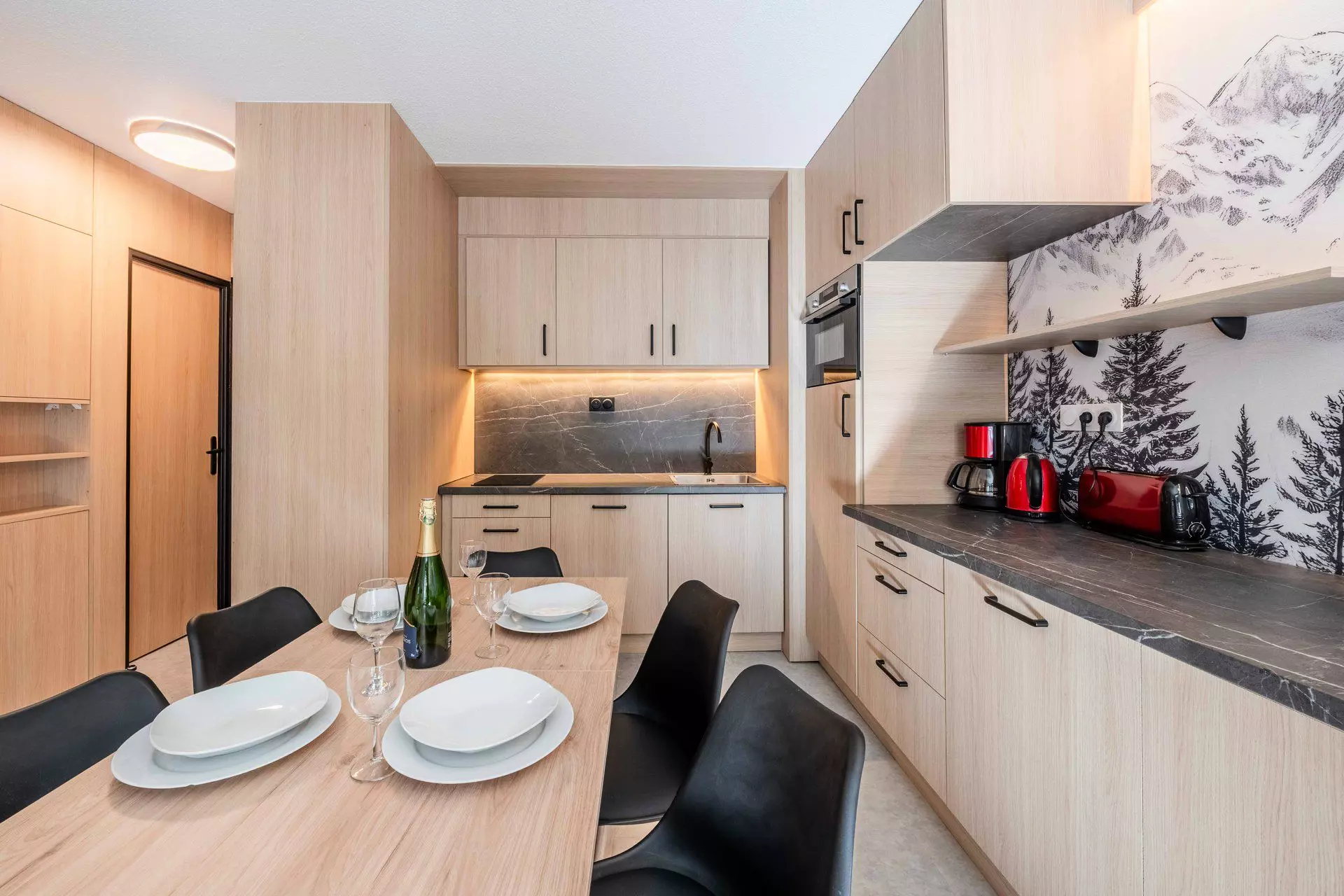 - Coin cuisine équipé (plaques vitrocéramiques, réfrigérateur, lave-vaisselle et micro-ondes)