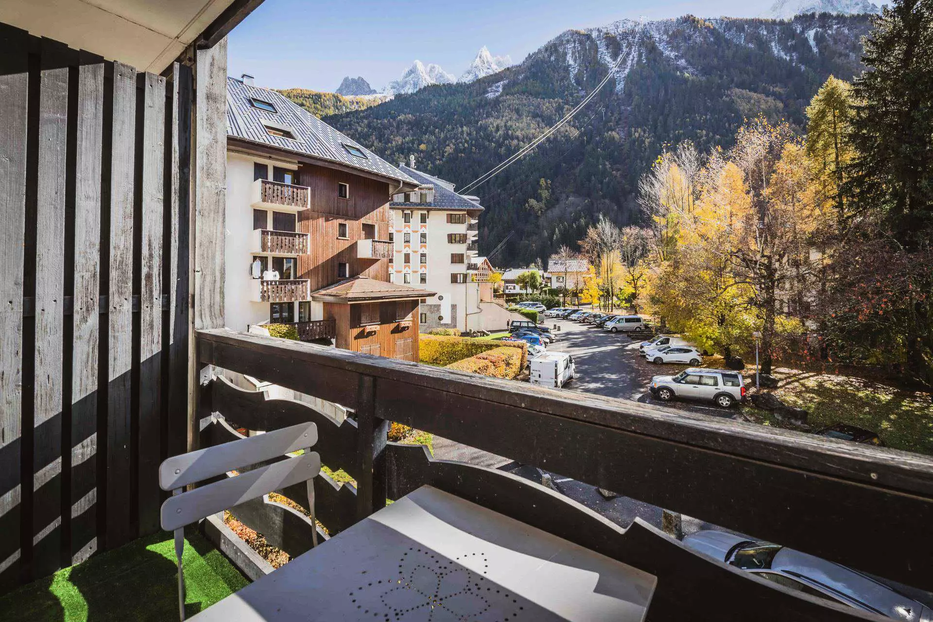 - Balcon équipé d'une petite table avec 2 chaises, vue sur le Mont Blanc