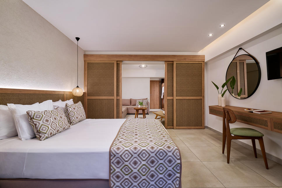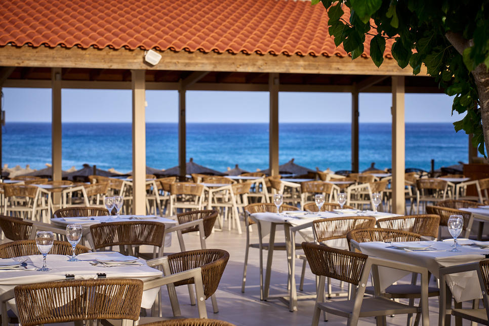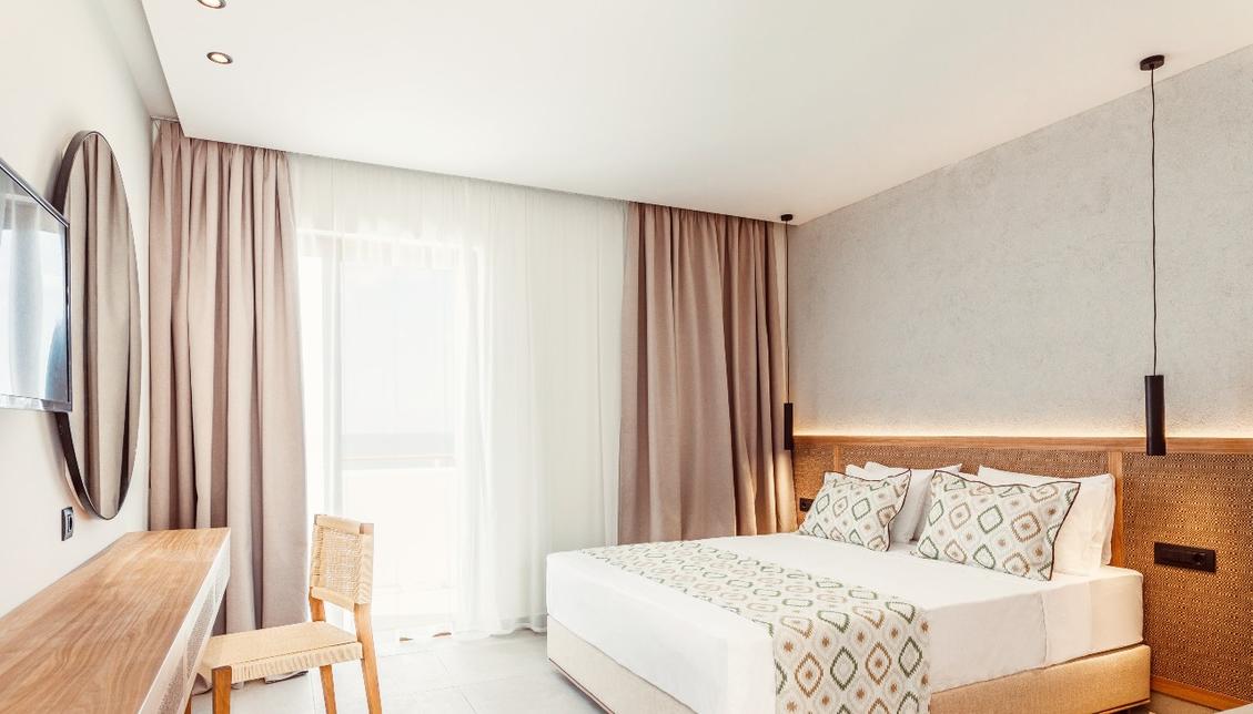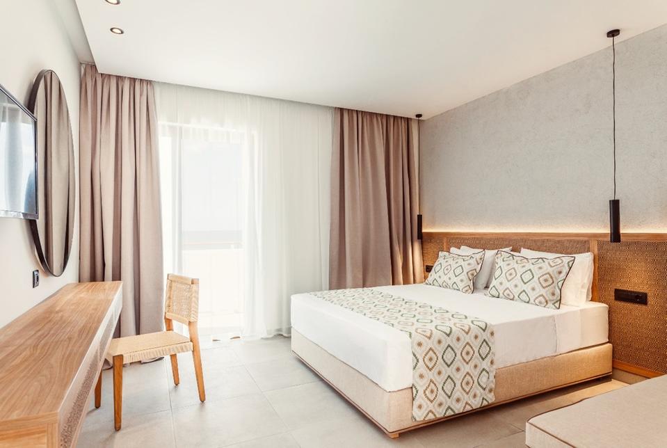 Le Blue Sea Island Resort vous accueille à quelques pas de la plage, dans un univers chic et tendance où tout a été pensé pour répondre à vos envies de bien-être et de dépaysement. À l’image des chambres, les intérieurs déclinent un design minimaliste faisant usage de matières et de couleurs naturelles. À l’extérieur, les aménagements paysagers suivent la même ligne et sont agrémentés de terrasses aux allures de lounges et de nombreux espaces de détente enserrant les piscines. L’harmonie du décor se ressent jusque dans les zones dédiées aux enfants ! Côté restauration, l’offre mise sur une cuisine saine alliant les saveurs locales, le savoir-faire grec et les grands classiques du monde.