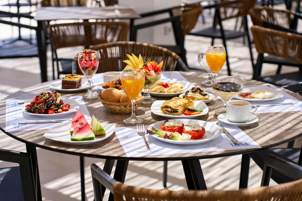 restaurant principal : cuisine grecque, cuisine internationale, restaurant buffet, pour petit-déjeuner, pour déjeuner, pour dîner