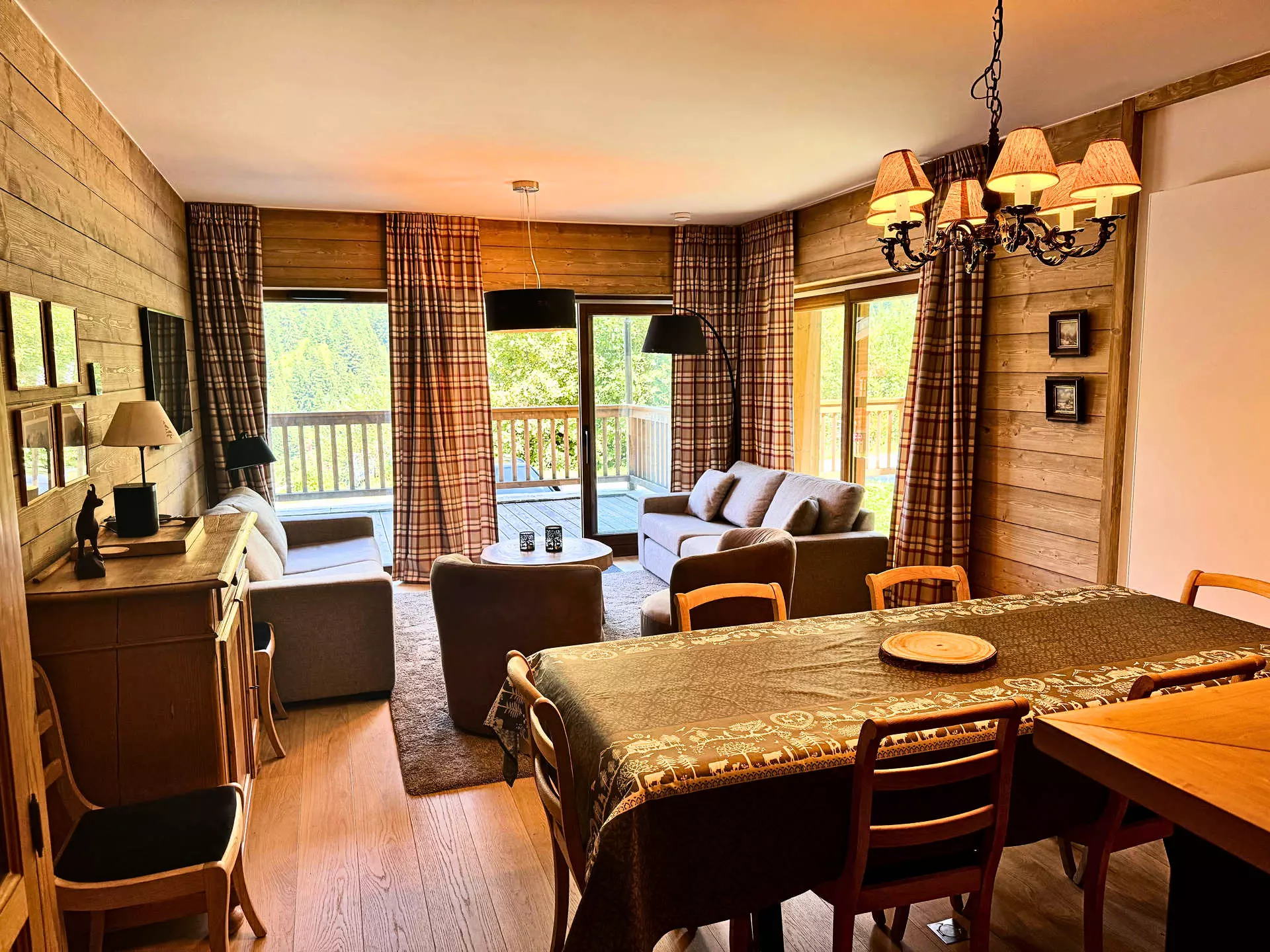 Cet appartement de 79m² pouvant accueillir jusqu'à 7 personnes est situé au rez de chaussée d'une résidence chalet bénéficant d'un accès rapide aux pistes et aux commerces (proximité de l'arrêt intermédiaire de la télécabine piétonne des Chalets et d'un arrêt de navette gratuite).