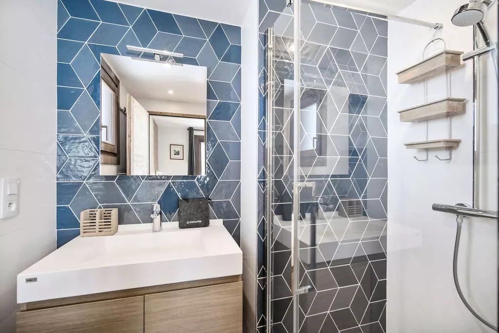 - Chambre 3 en suite : 1 lit double 160*200, Salle de douche, sèche serviette, vasque simple