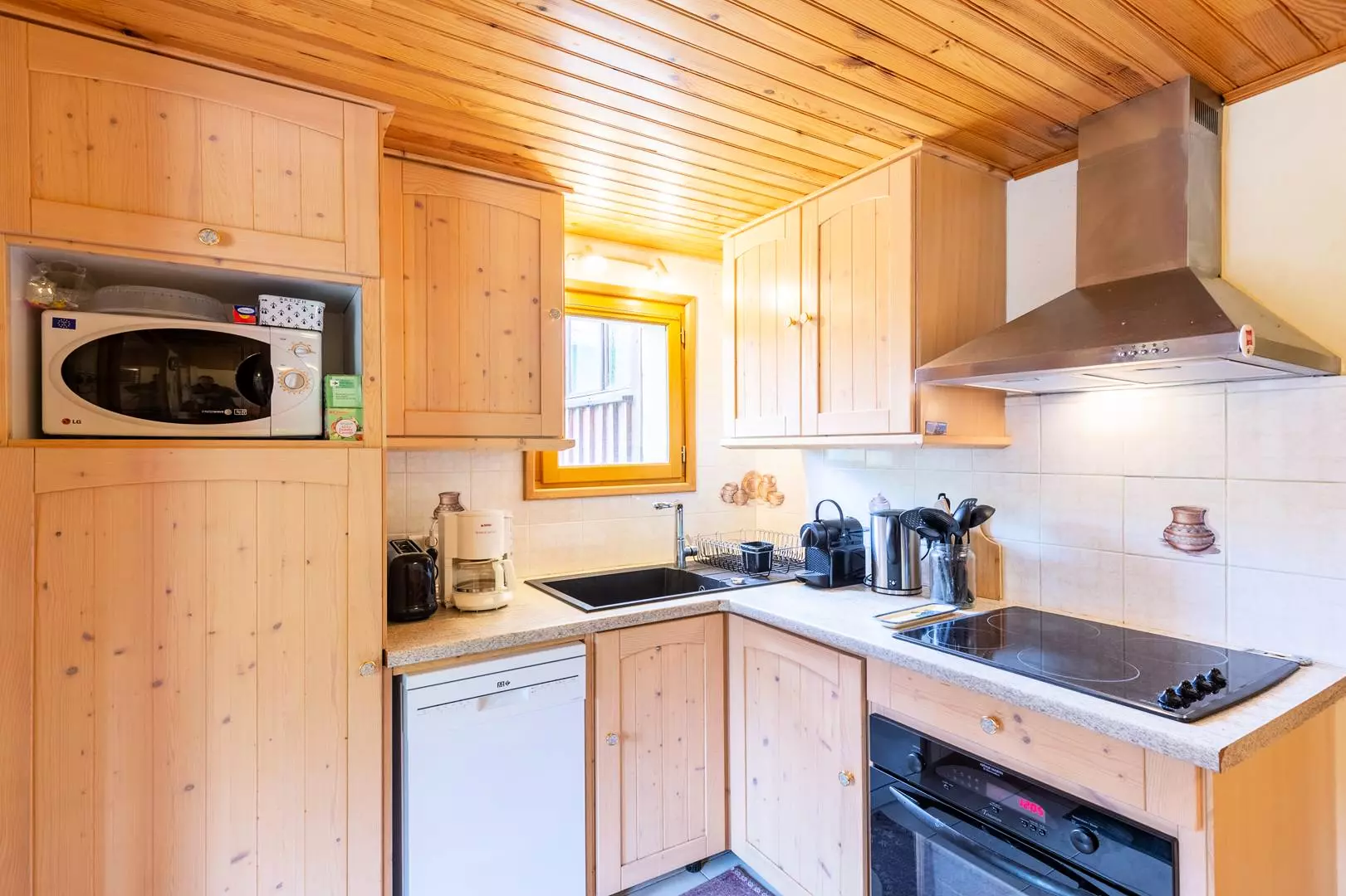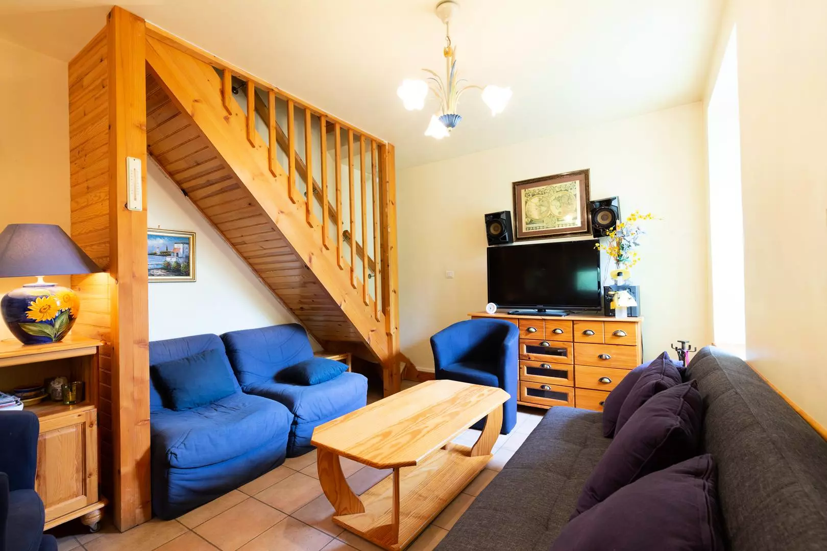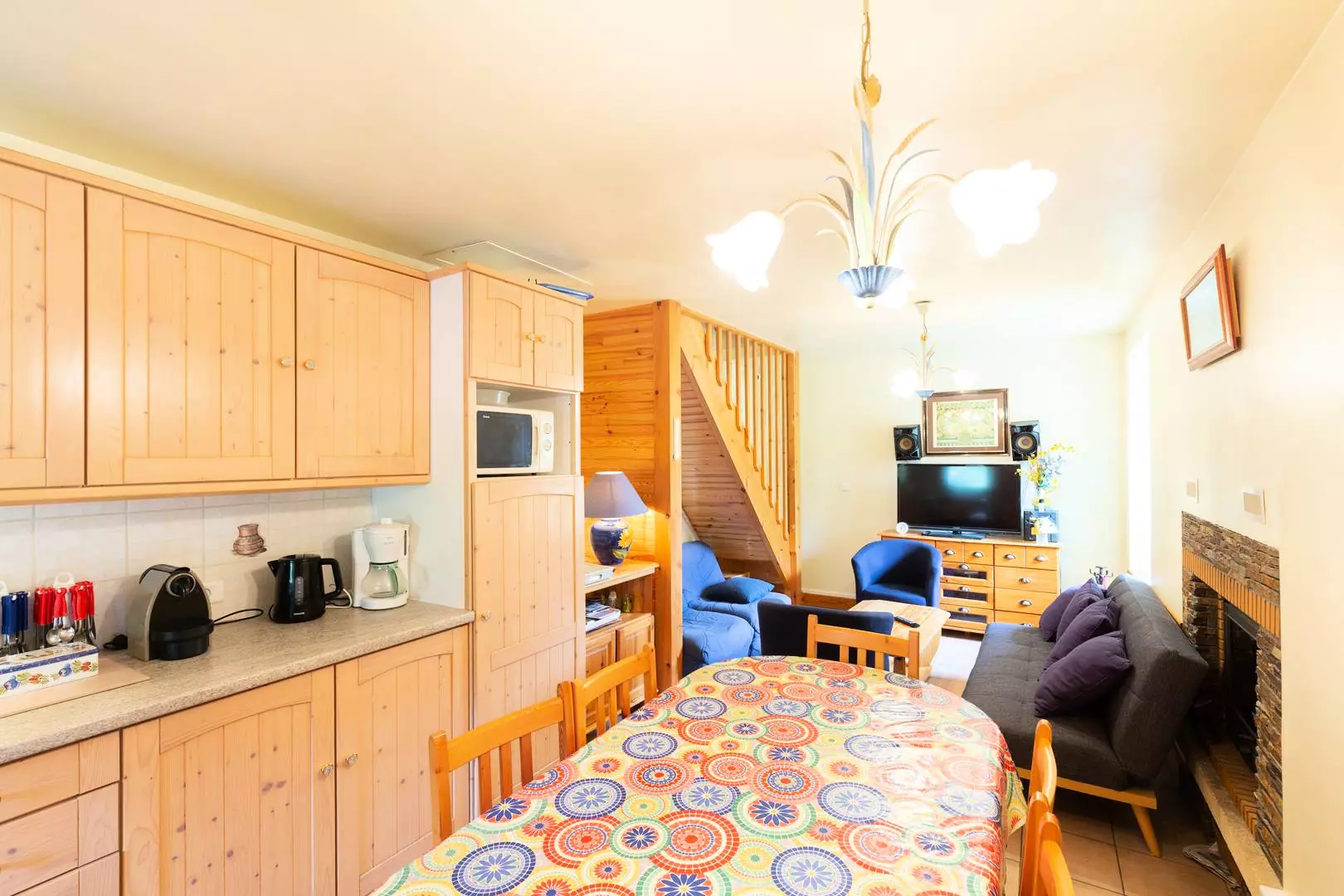 3 chambres, dont deux avec grands lits, cuisine équipée, salon avec cheminée, terrasse.