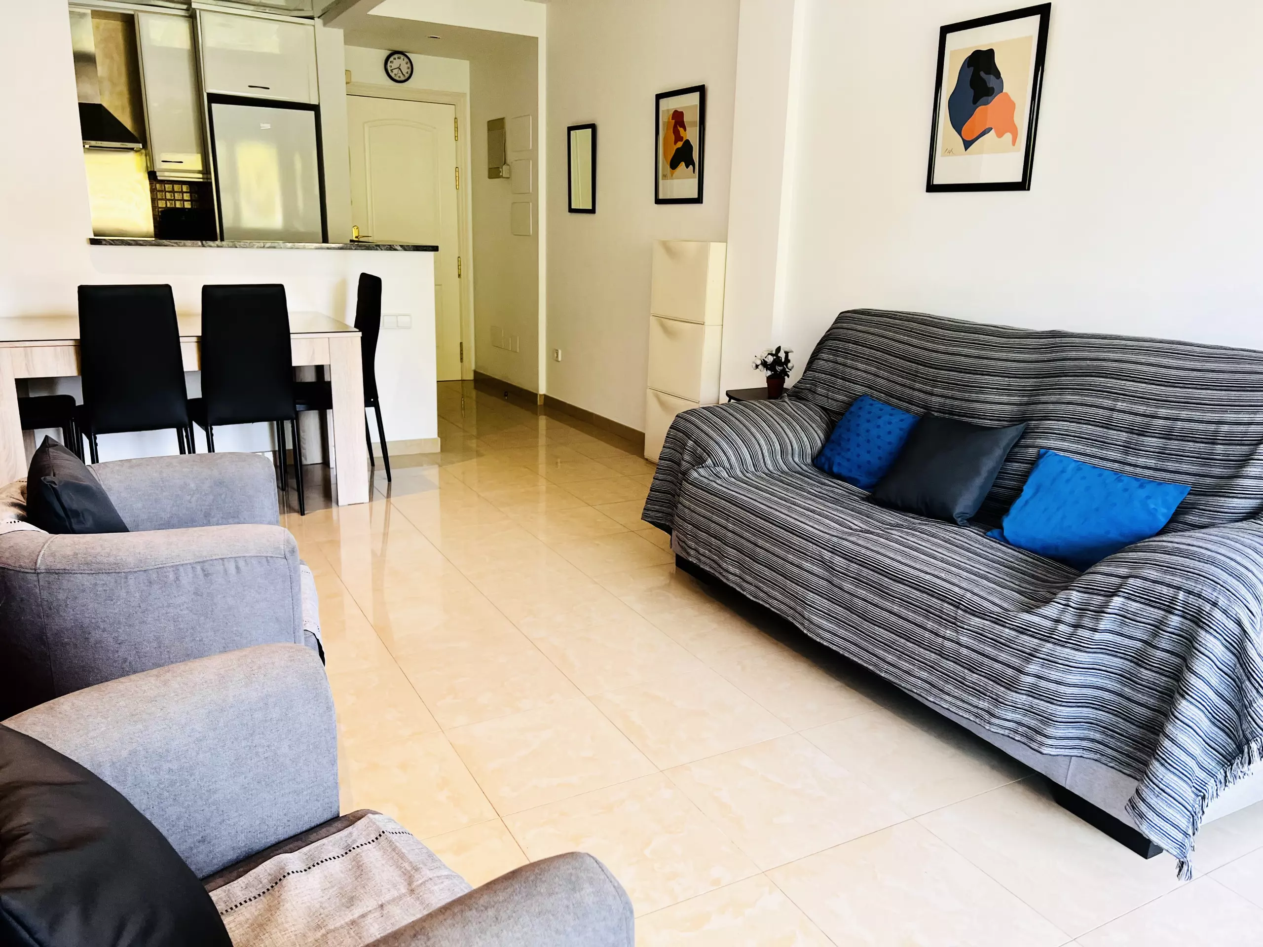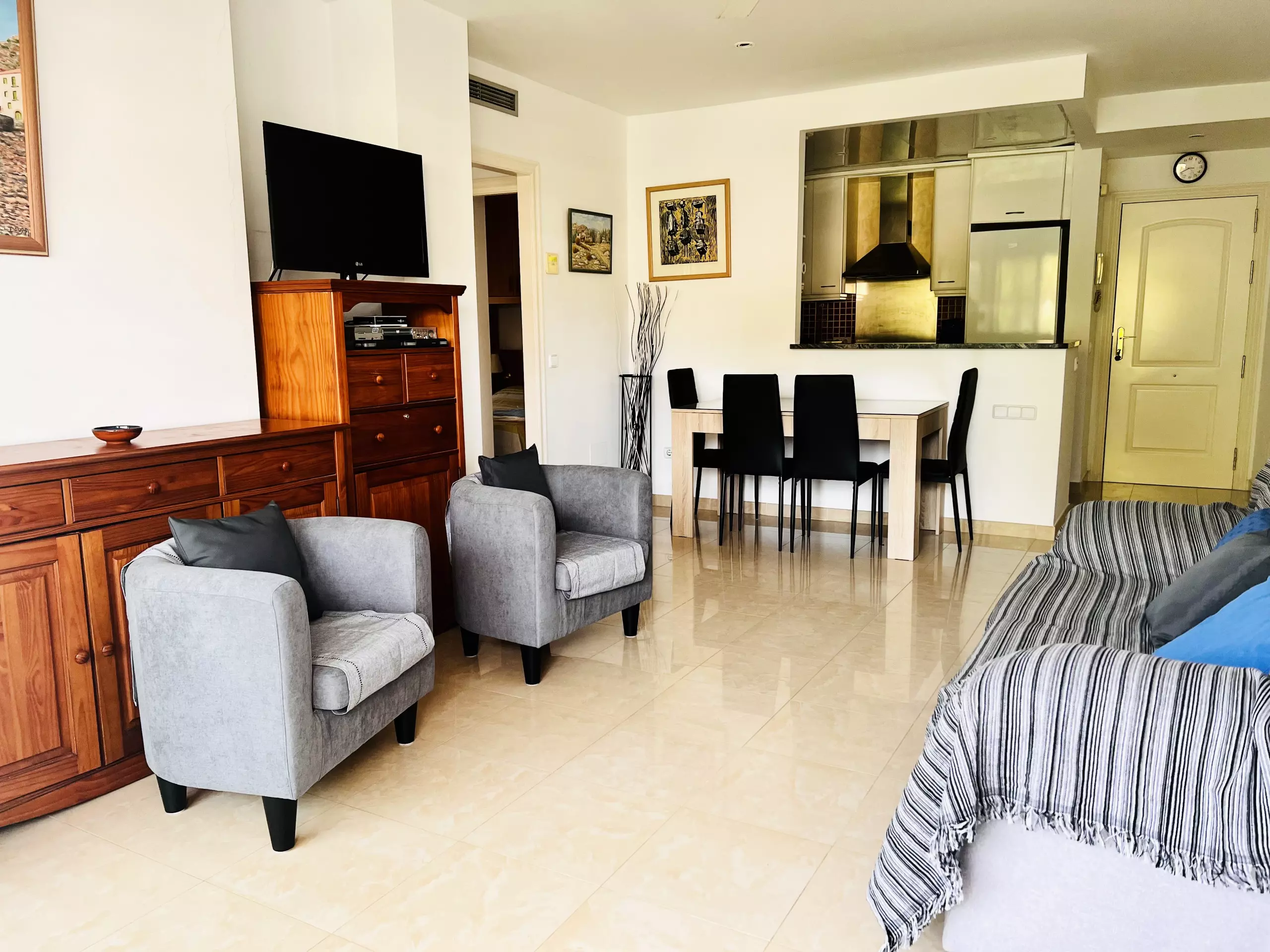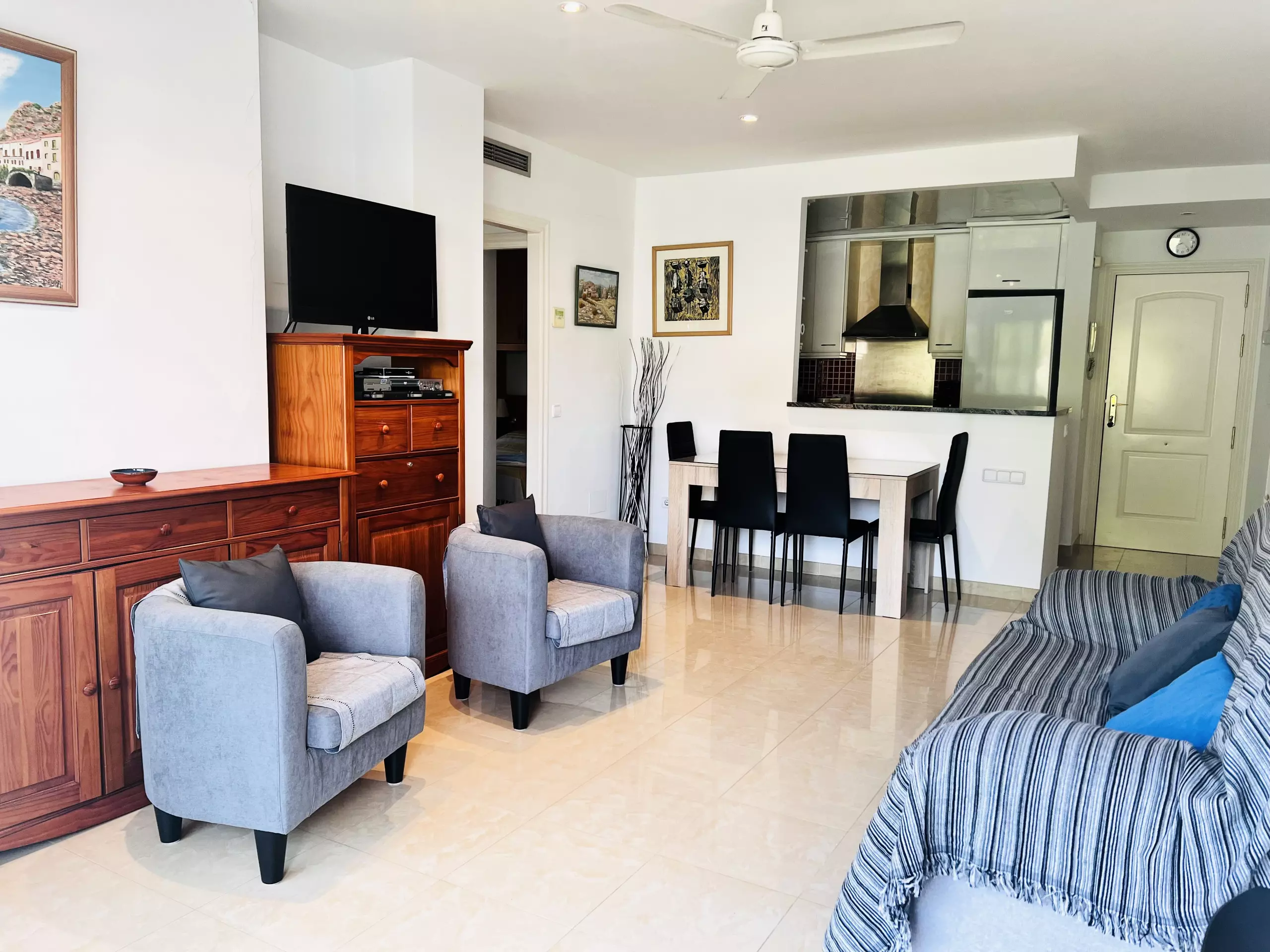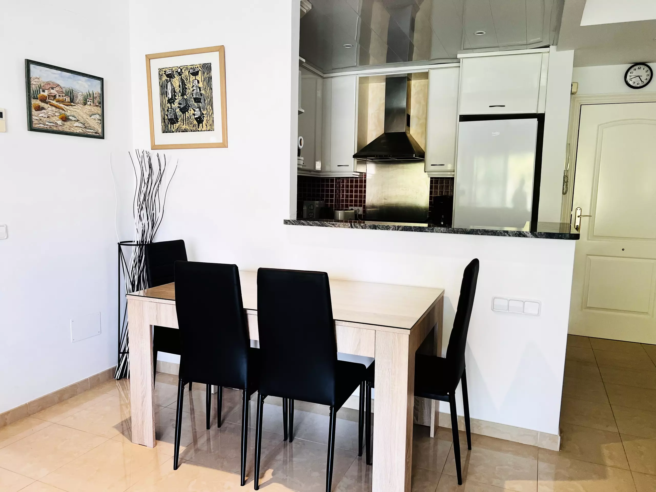 Situé au cœur de la ville, cet appartement est bien équipé avec un accès par ascenseur, un balcon, la climatisation pour le chaud et le froid, des ventilateurs, des moustiquaires et l'accès à une piscine commune avec une zone séparée pour les enfants. La commodité d'avoir une place de parking extérieure dans le même enceinte est un plus. Le divertissement est assuré avec une télévision. Si nécessaire, l'agence peut organiser l'accès à Internet moyennant des frais supplémentaires de 10 €/jour, selon la disponibilité.