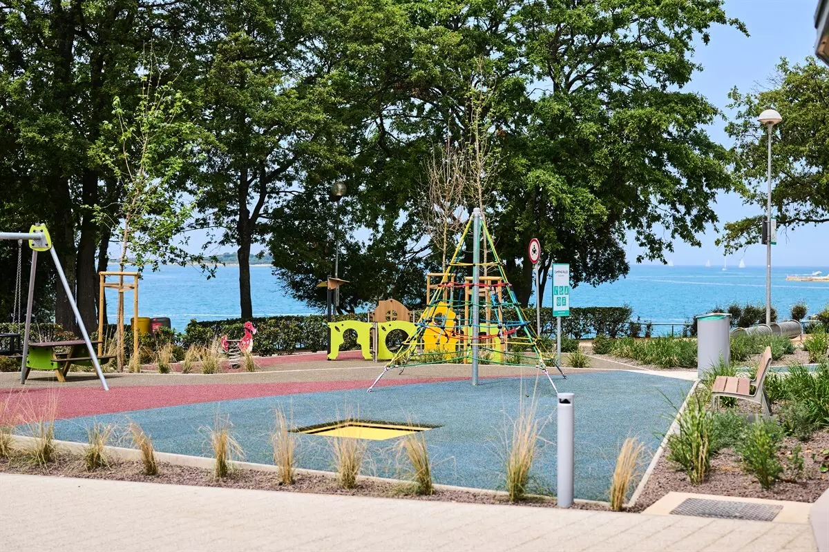 Vous avez la possibilité de vous rafraîchir dans l'un des deux ensembles de piscines, comprenant des zones peu profondes idéales pour les plus jeunes, ou de profiter des eaux cristallines de la mer Adriatique. L'une des piscines, stratégiquement située à proximité de la mer, offre une alternative rafraîchissante. La natation est une activité particulièrement prisée ici, et vous avez même la possibilité de plonger directement depuis la plage. N'oubliez pas d'emporter des chaussures d'eau, car les plages de l'Istrie sont principalement composées de rochers et de galets.