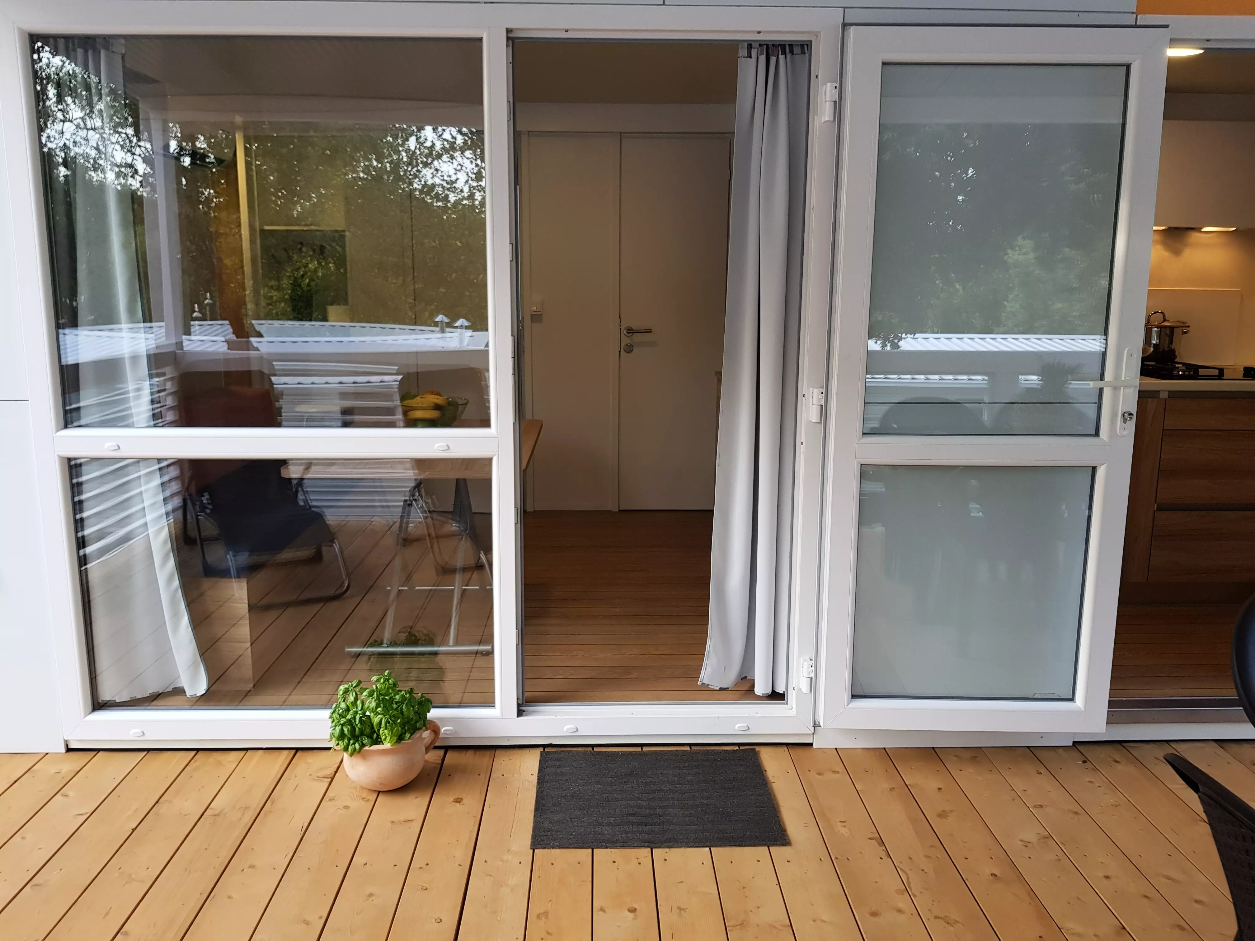 - coin extérieur : Terrasse en bois, semi-couverte, ou entièrement couverte avec mobilier de jardin