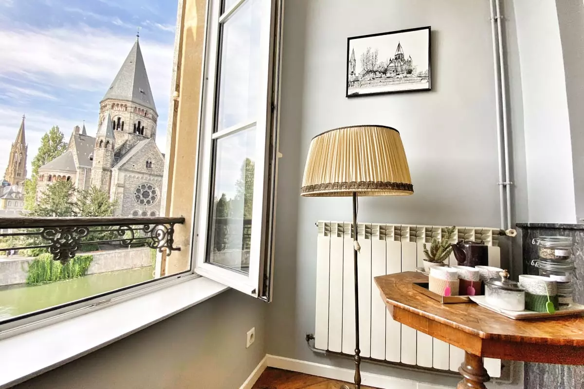 Appartement deux pièces sur les bords de la Moselle avec vue sur le Temple Neuf et proche de toutes les meilleures places de la ville