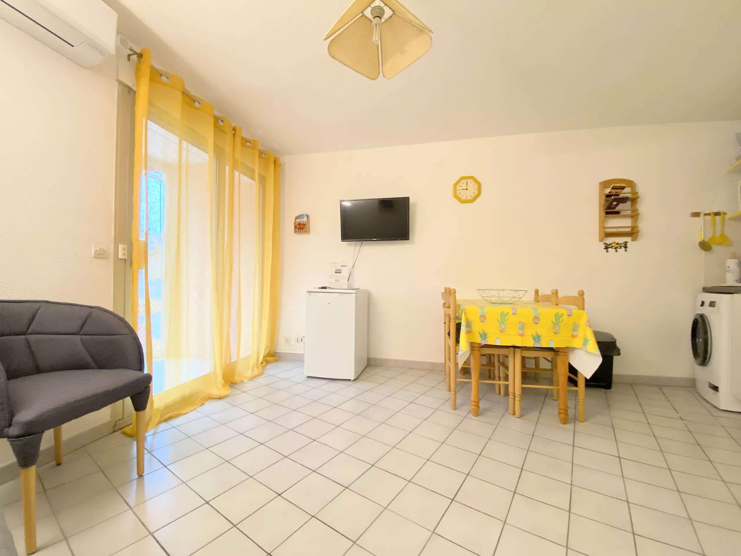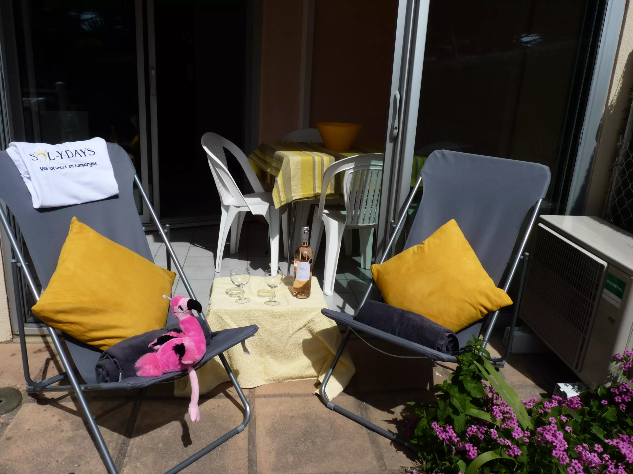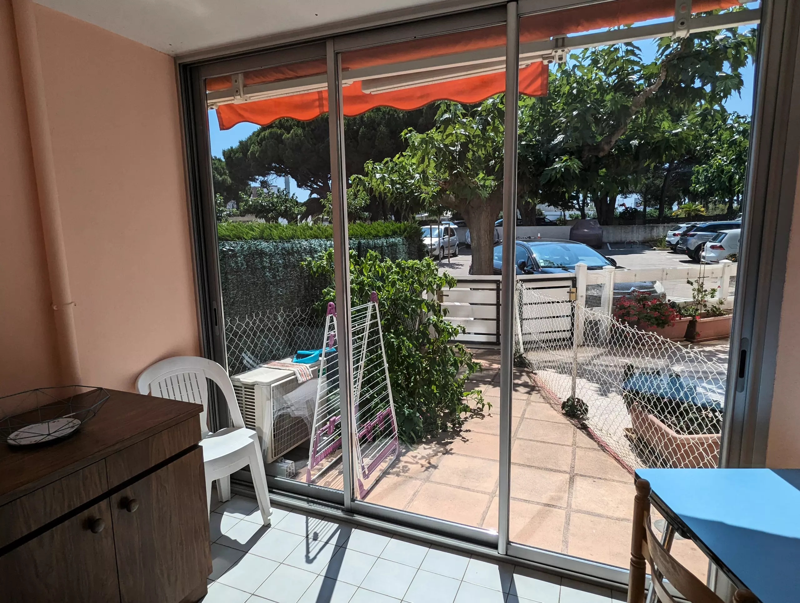 Dans une résidence en deuxième ligne avec un accès direct aux plages, cet appartement climatisé de 4 couchages est situé en rez-de-chaussé avec une terrasse de 8 m² exposées Sud-Ouest; il comprend un séjour prolongé par une véranda, un coin cuisine, une chambre, une salle de bain et un WC séparé; place de parking privative devant la terrasse. Depuis le logement, vous accédez directement à pied aux plages et à la promenade du front de mer qui va du centre-ville à Port Camargue; tous commerces à proximité.