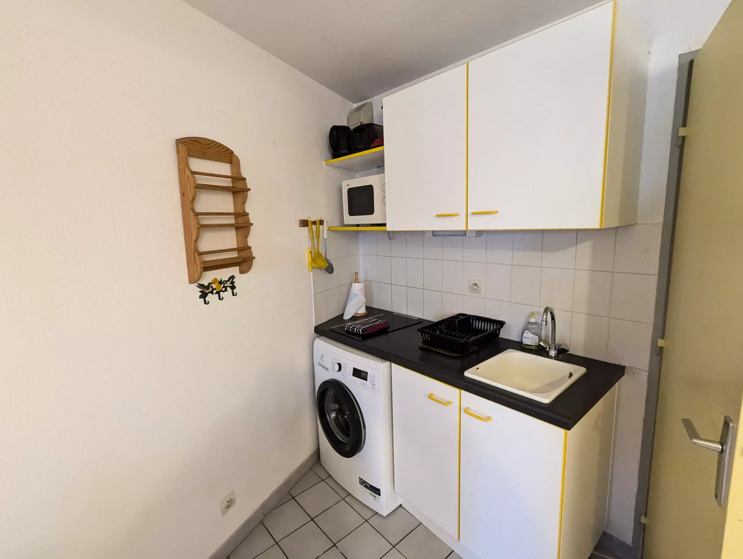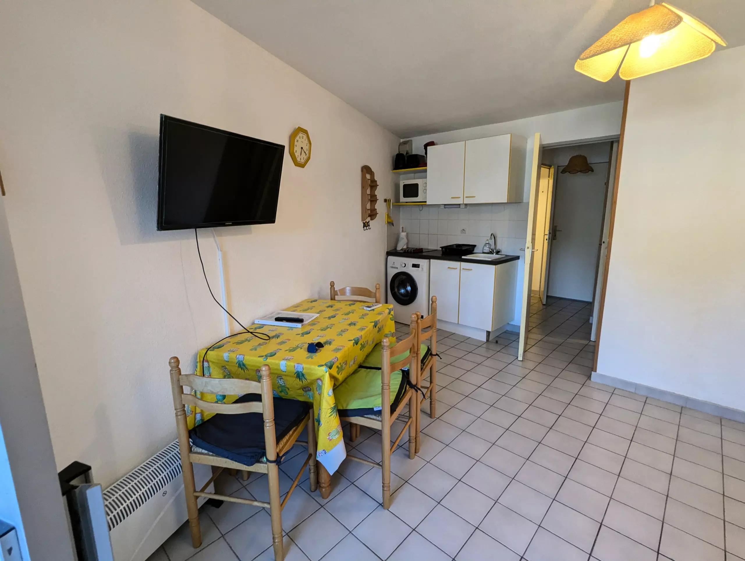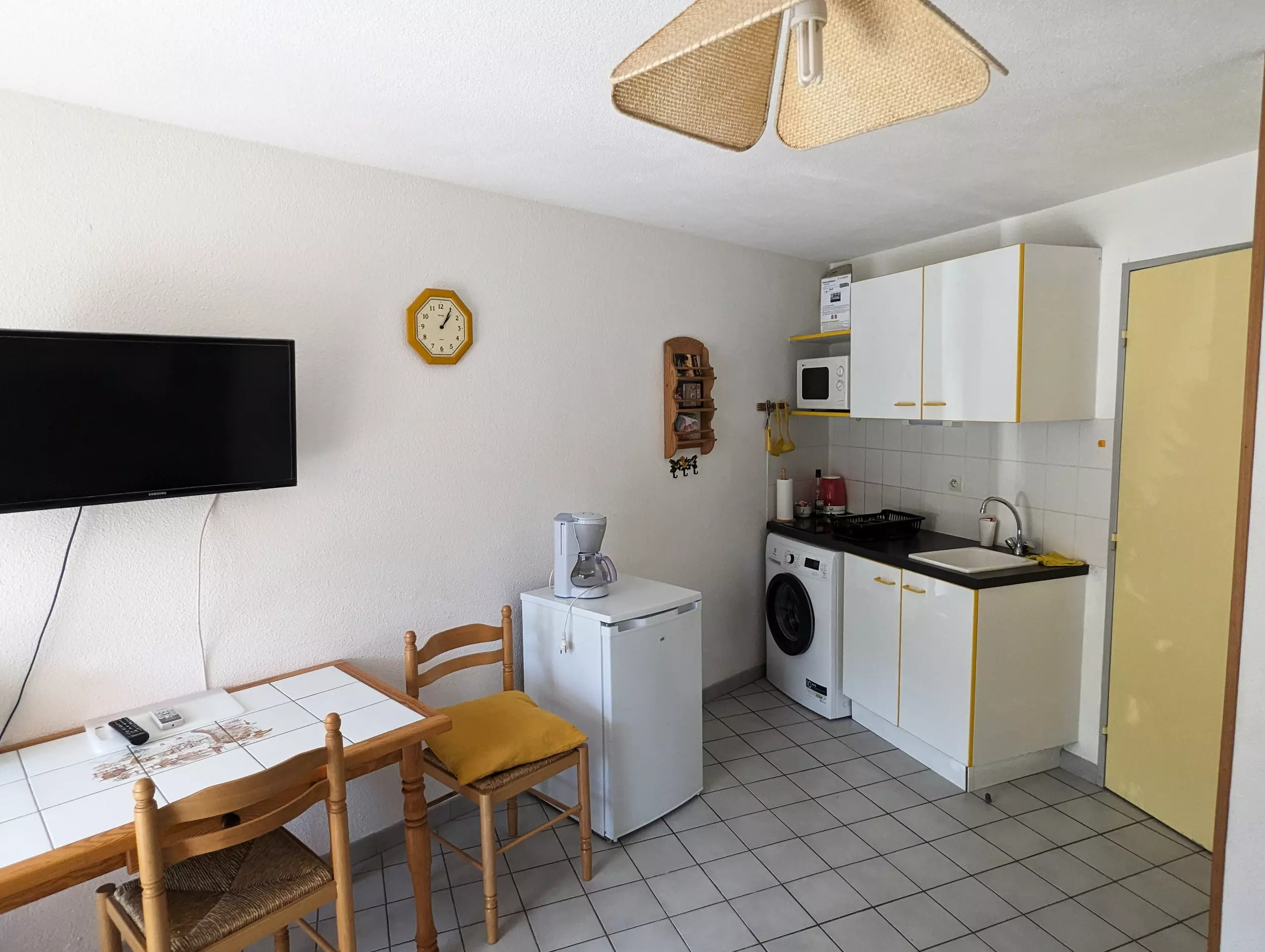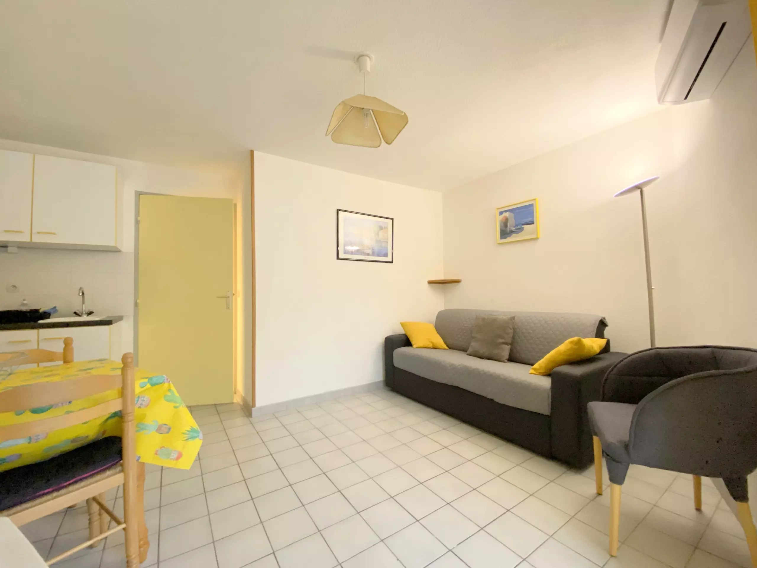 Dans une résidence en deuxième ligne avec un accès direct aux plages, cet appartement climatisé de 4 couchages est situé en rez-de-chaussé avec une terrasse de 8 m² exposées Sud-Ouest; il comprend un séjour prolongé par une véranda, un coin cuisine, une chambre, une salle de bain et un WC séparé; place de parking privative devant la terrasse. Depuis le logement, vous accédez directement à pied aux plages et à la promenade du front de mer qui va du centre-ville à Port Camargue; tous commerces à proximité.