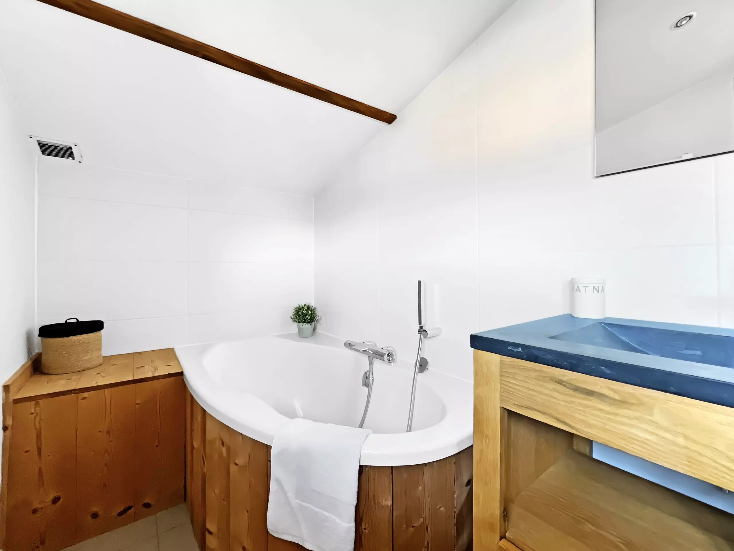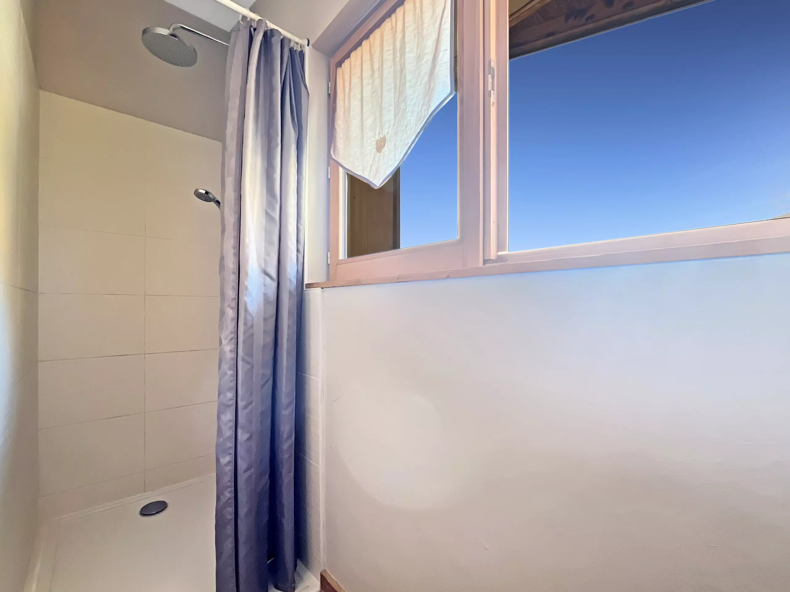 Le chalet dispose de d'une salle de bain avec douche baignoire et wc, d'une salle d'eau avec wc, et d'un wc séparés.