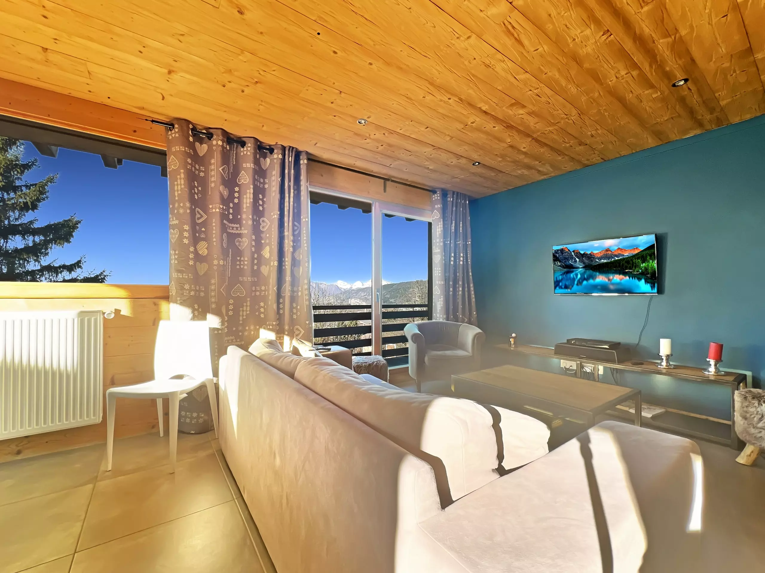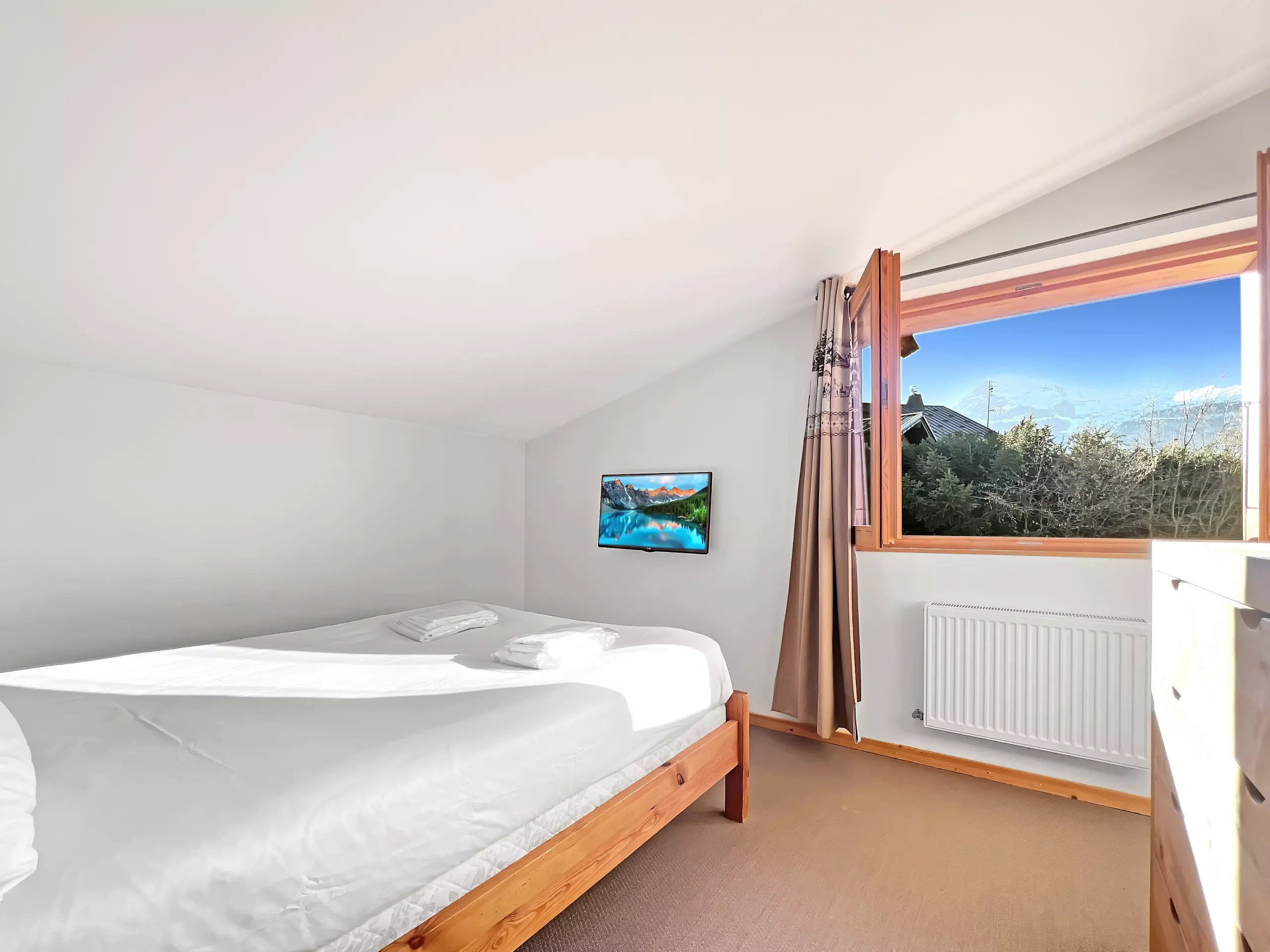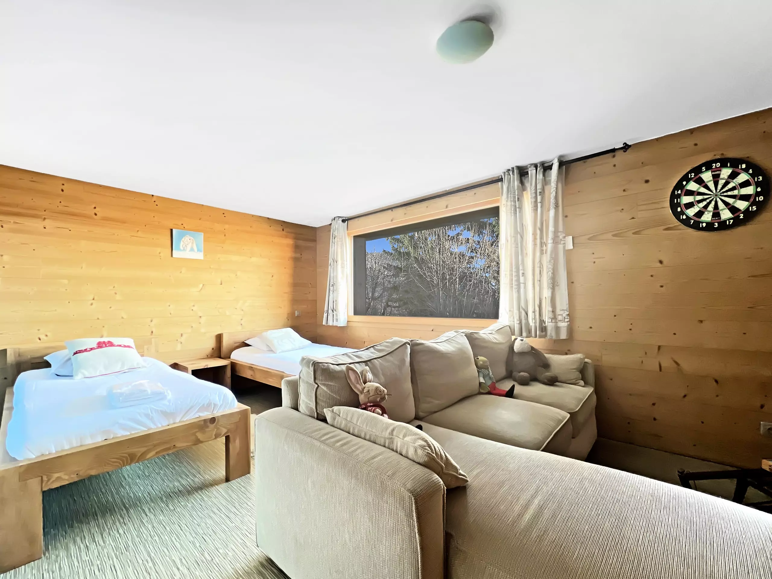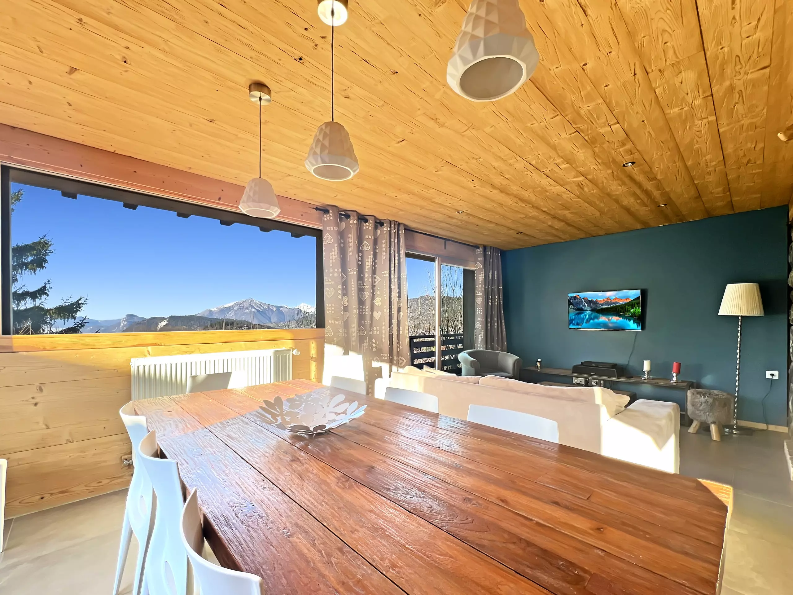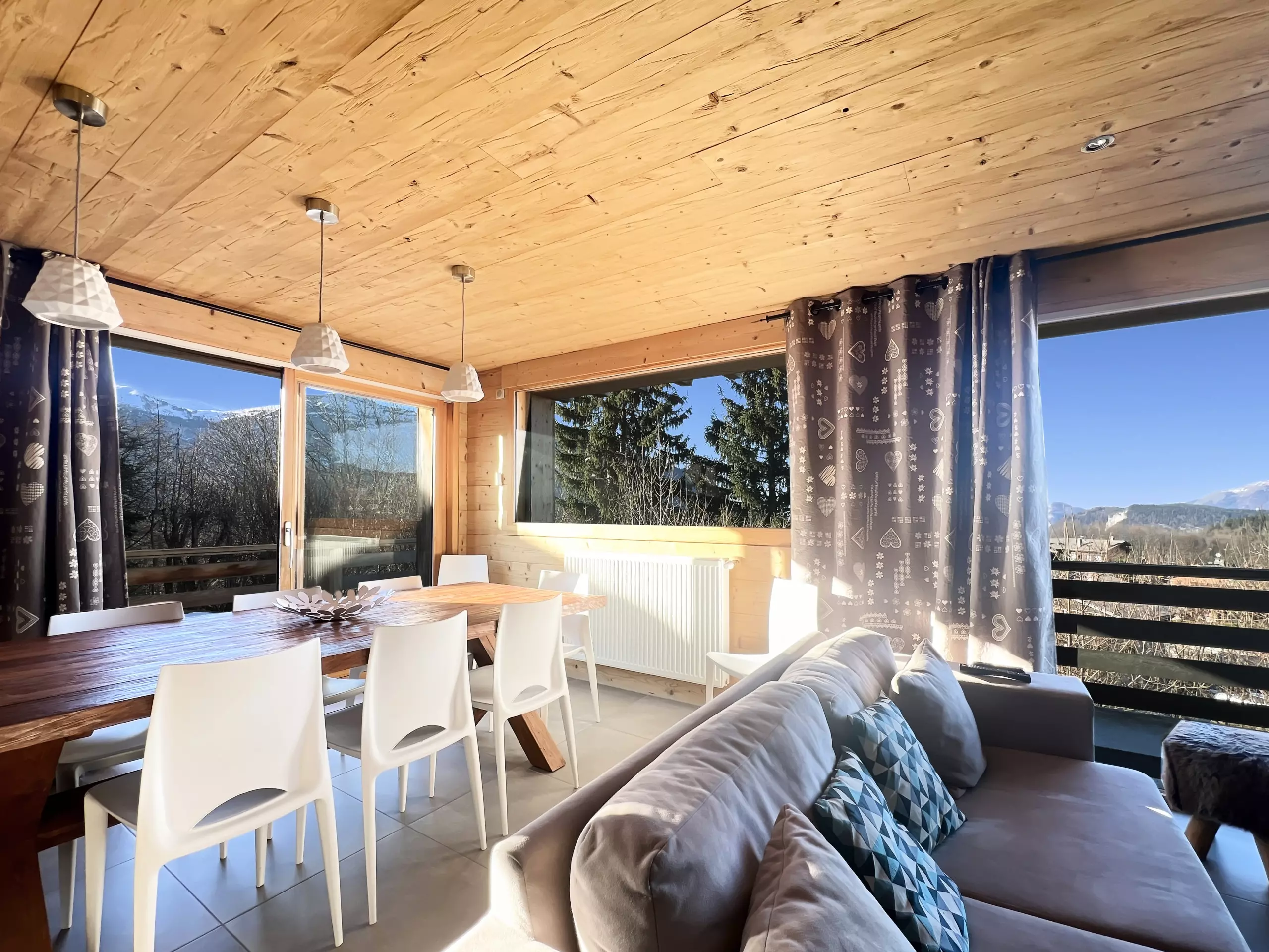 Chalet individuel entièrement rénové "La Tribu" dans le quartier du Pernand, à 900 m du centre du village, proche d'un arrêt ski-bus.. Ce chalet sur trois niveaux, d'une surface de 180 m² habitables, d'une capacité d'accueil de 10 personnes avec 5 chambres se compose d'une entrée donnant sur le salon séjour avec une cuisine américaine, de grandes baies vitrées vous offrent une très belle vue sur le Village et le Massif des Aravis. A l'étage vous trouverez 3 chambres avec des lits doubles dont deux avec balcon. Au niveau - 1 vous trouverez une chambre avec un lit double et une 5ème chambres avec 2 lit de 90. Toutes les chambres sont équipées d'une télévision écran plat.