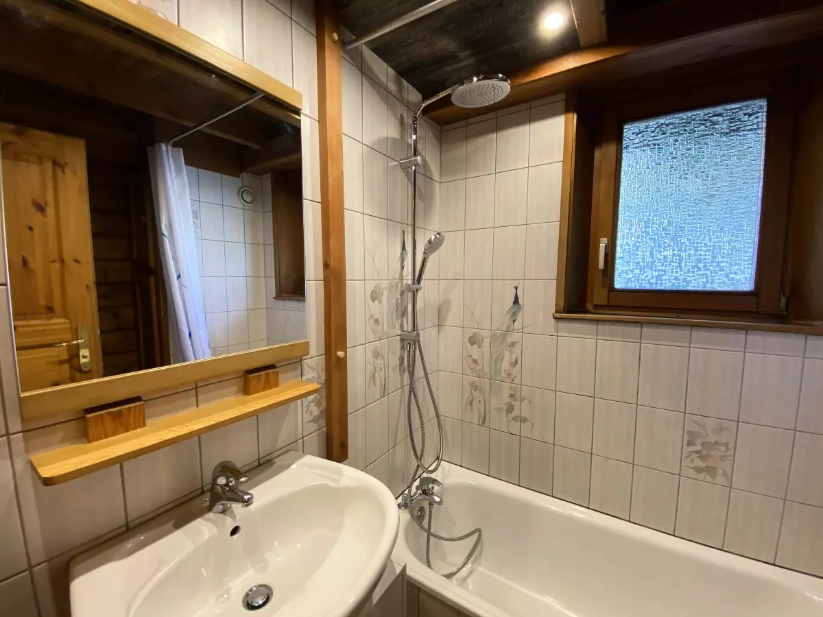 - Salle de bain : Une salle de bain avec Baignoire, lavabo, et sèche-cheveux