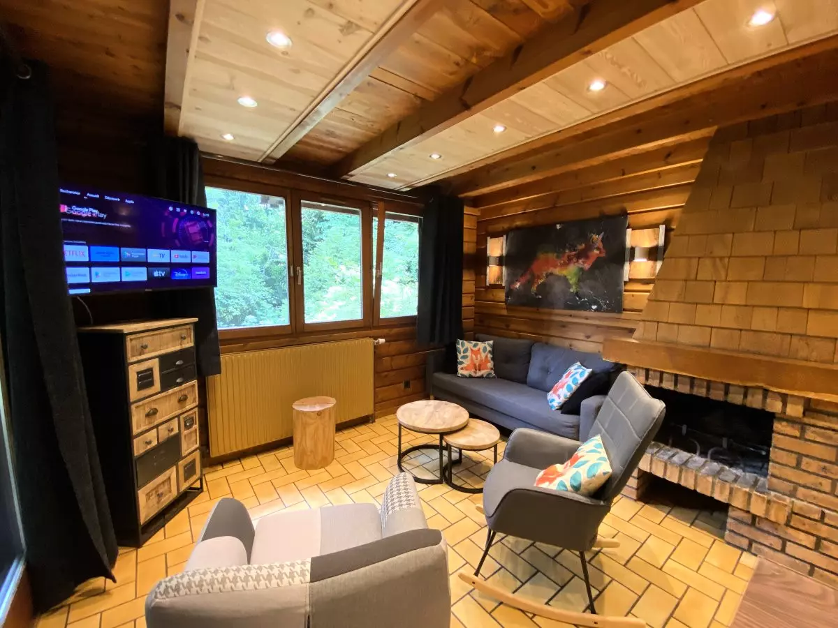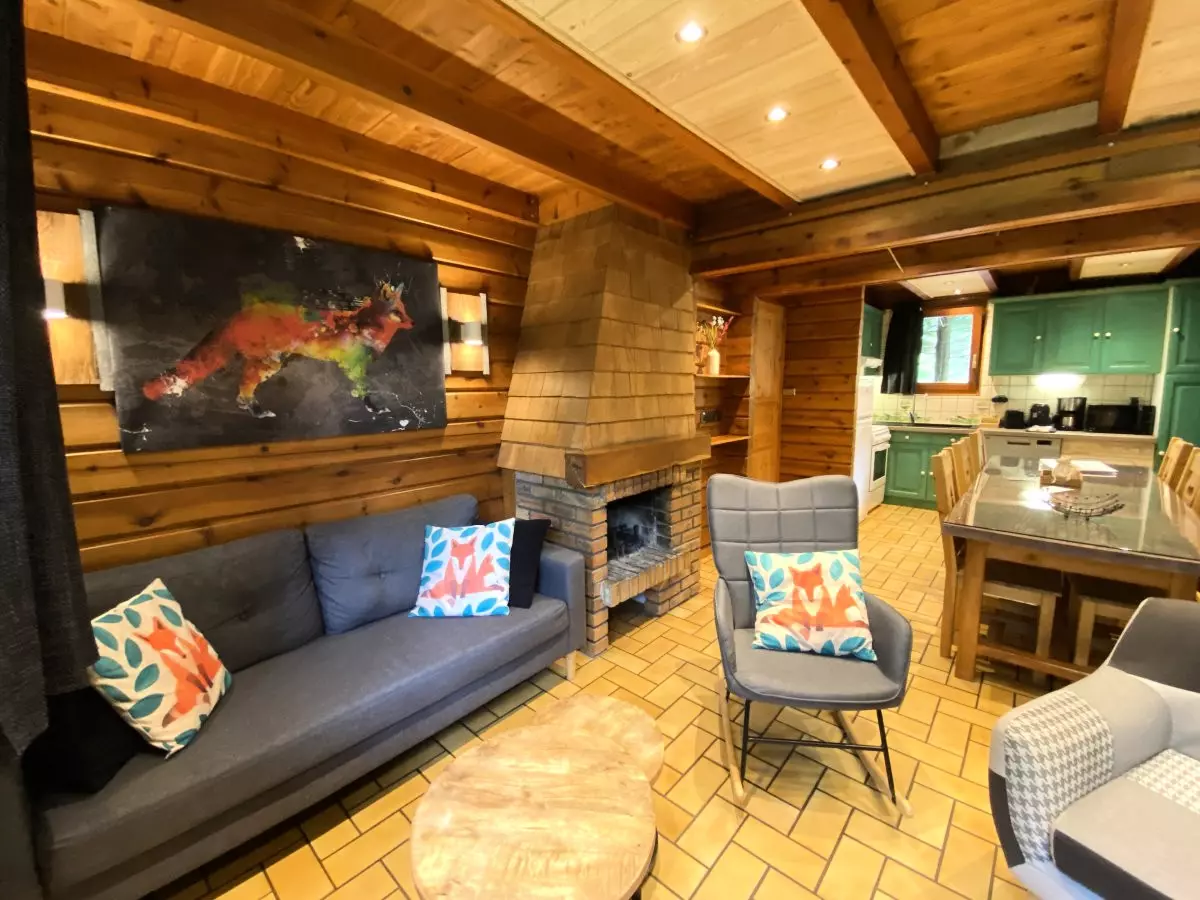 - Salon/Séjour : Espace chaleureux avec canapé confortable, cheminée, télévision à écran plat Smart TV connectée et coin repas, idéal pour se détendre en famille ou entre amis