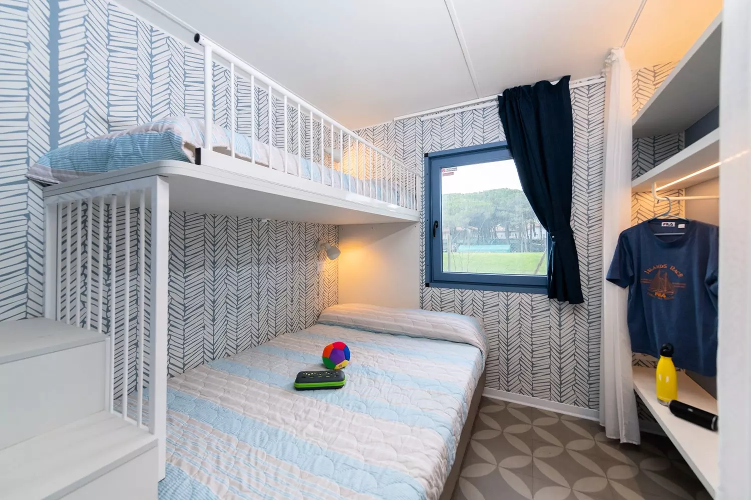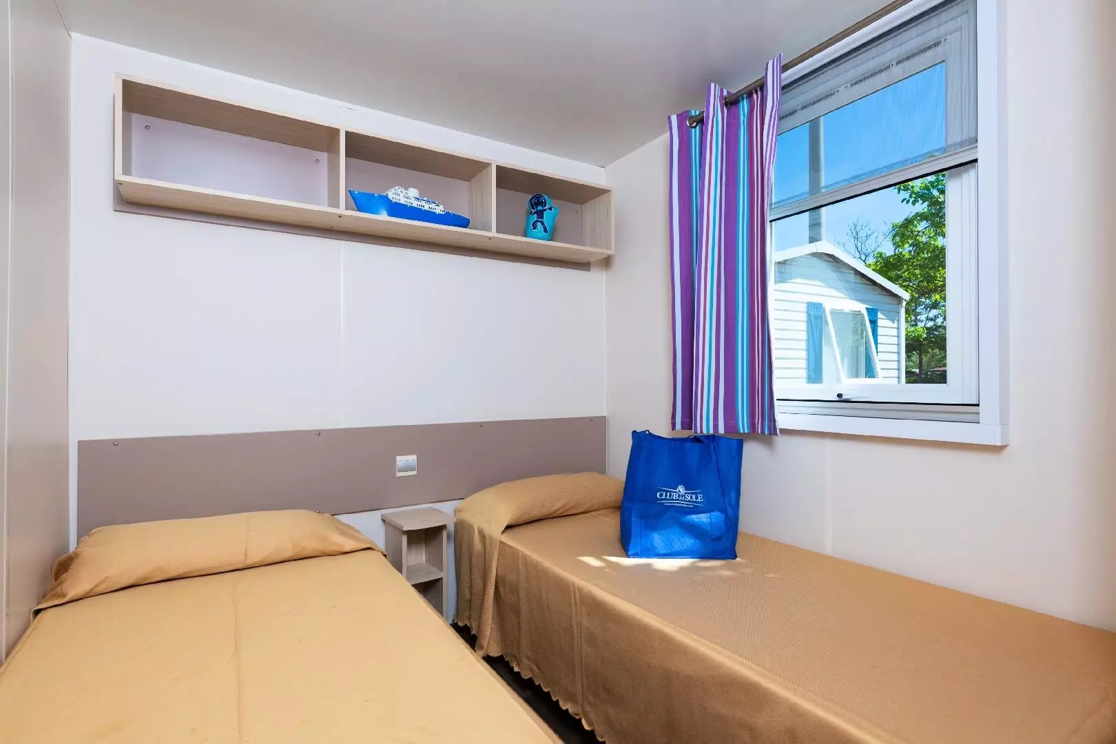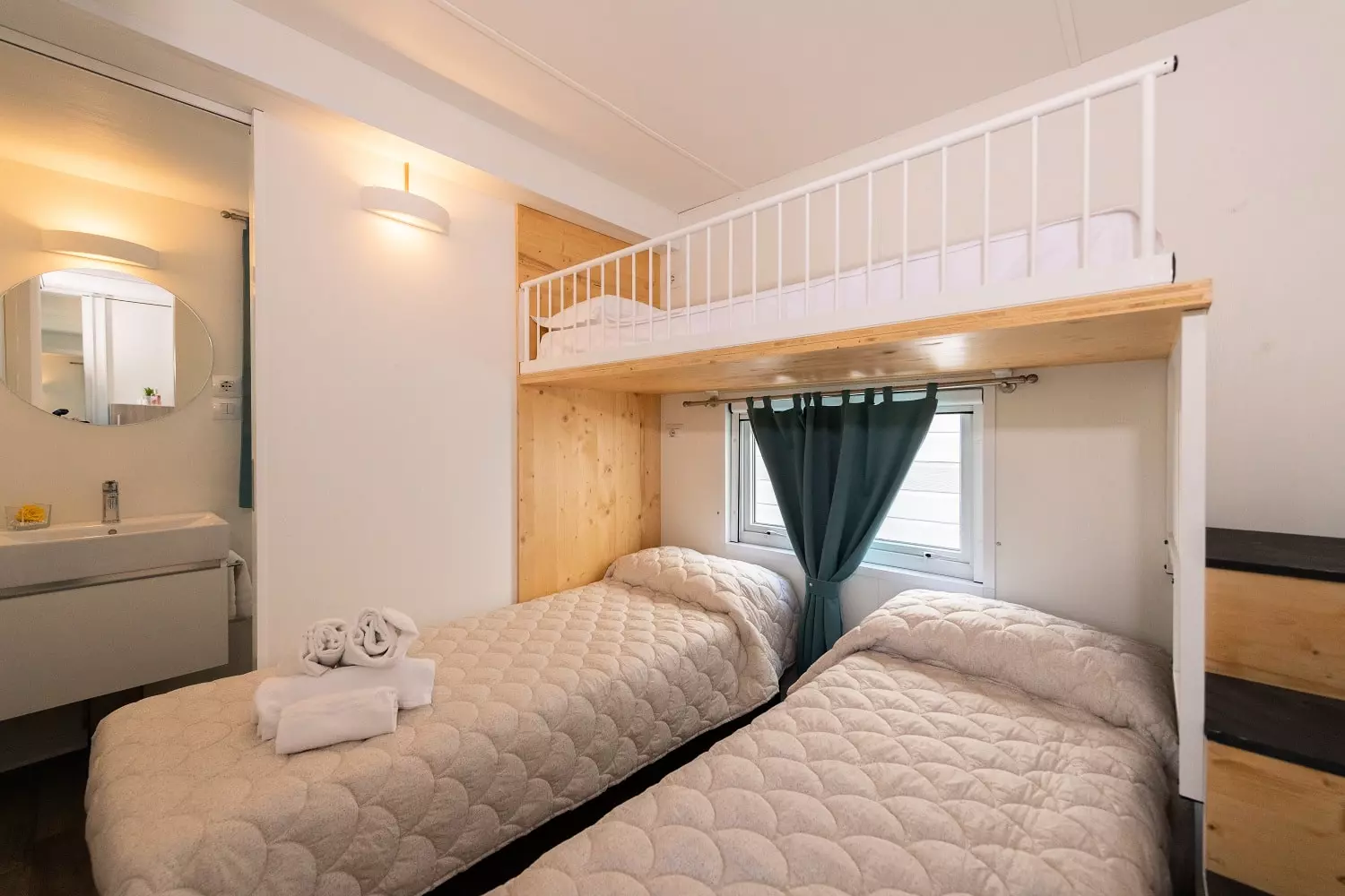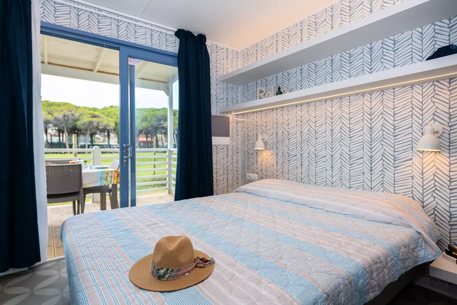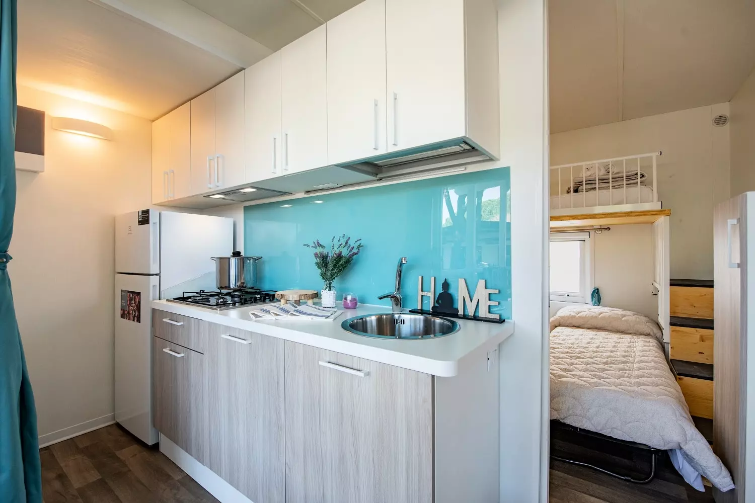 Raffinement et design : voici 2 adjectifs qui décrivent parfaitement notre Marte, le mobil-home tourné vers l'avenir avec des intérieurs magnifiquement conçus. Composé de 3 chambres, l'une avec lit double et les autres avec deux lits simples chacune, et de 2 salles de bains avec toilettes, lavabo et cabine de douche, avec ses 34 m², il est idéal pour les grandes familles ou les groupes d'amis. Le grand et lumineux espace jour, avec sa kitchenette entièrement équipée avec colonne frigo et son confortable canapé coloré, et la grande véranda extérieure, équipée de table et chaises, constituent le cadre parfait pour déjeuners et dîners dans la joie. L'équipement compte également air conditionné et TV. Sèche-cheveux pas disponible.
