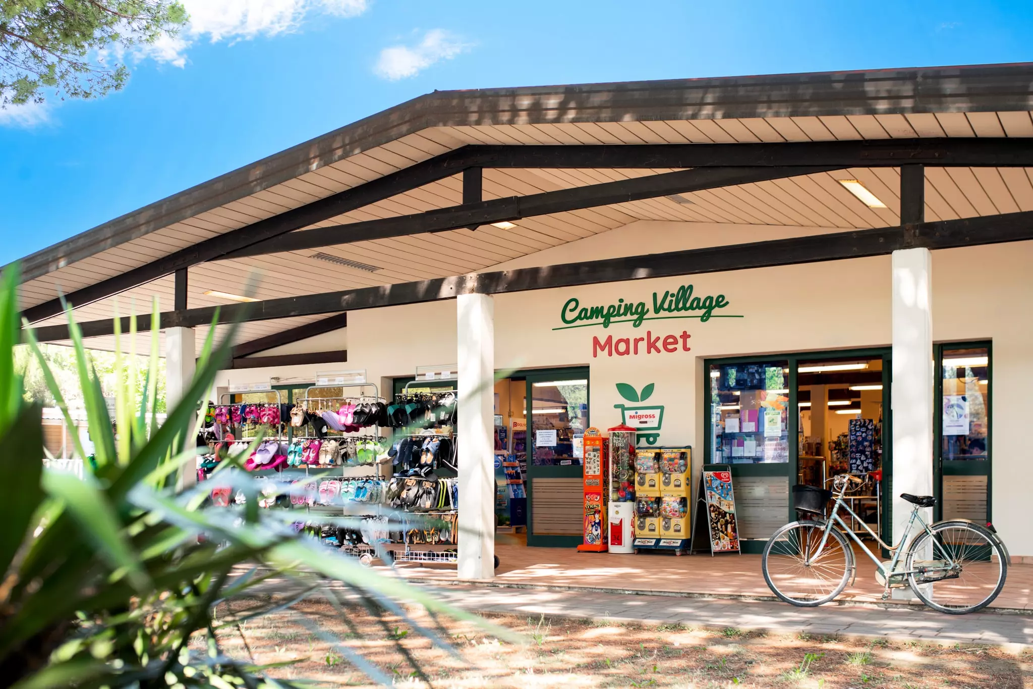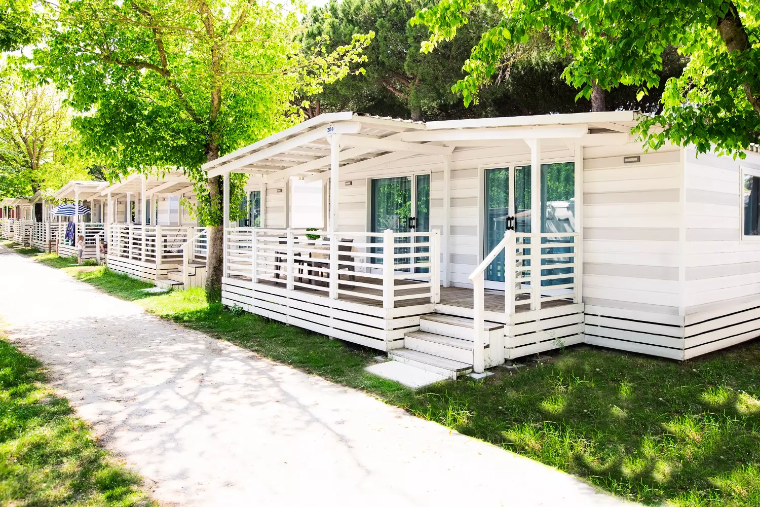 Emplacements de différentes dimensions, avec connexion électrique pour ceux qui aiment le camping, bungalows en bois et mobil-homes de dernière génération pour ceux qui souhaitent allier tout le confort du village aux vacances classiques en plein air.
