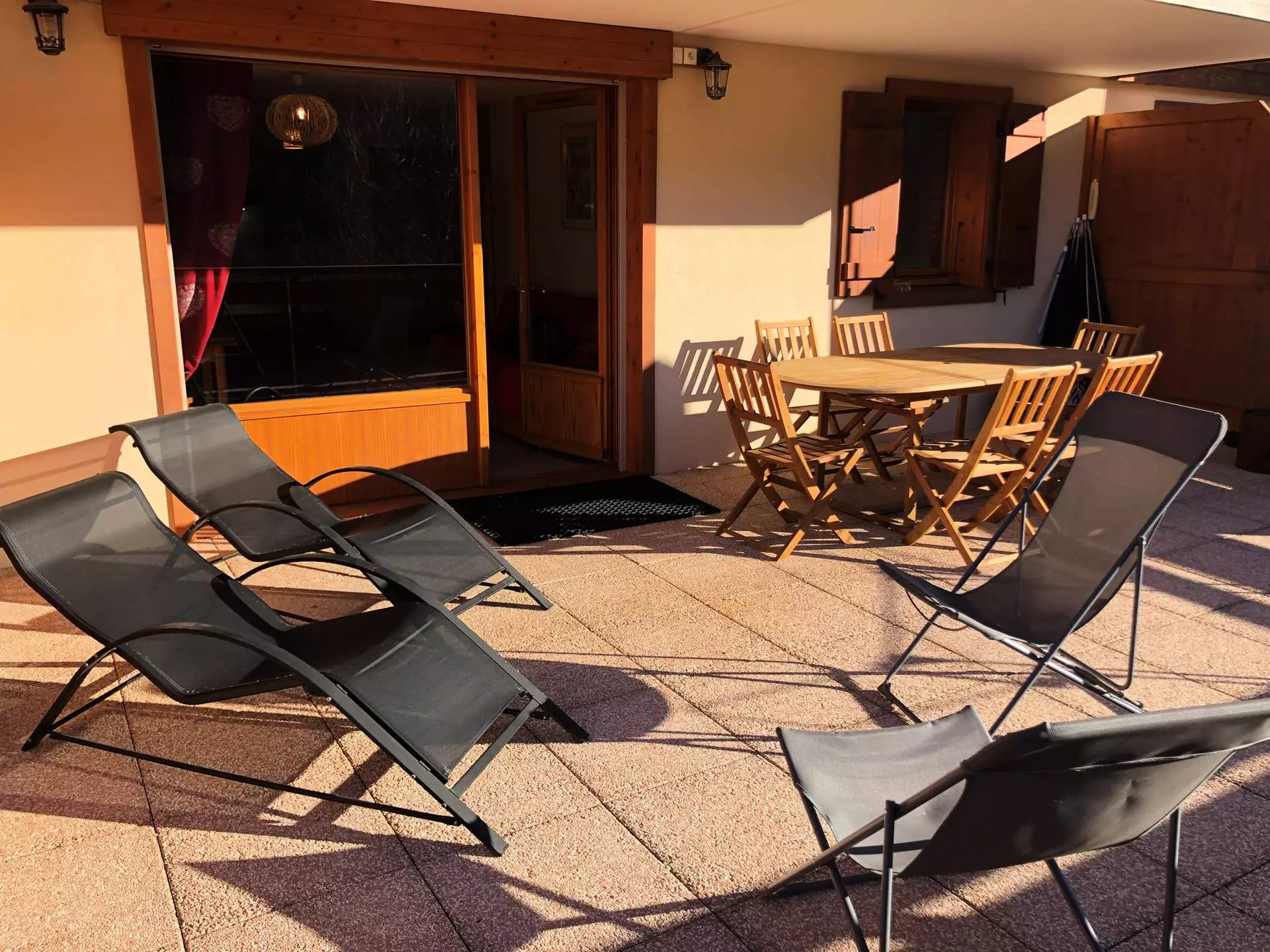 Balcon plein sud avec superbe vue sur le Massif des Aravis et le village.