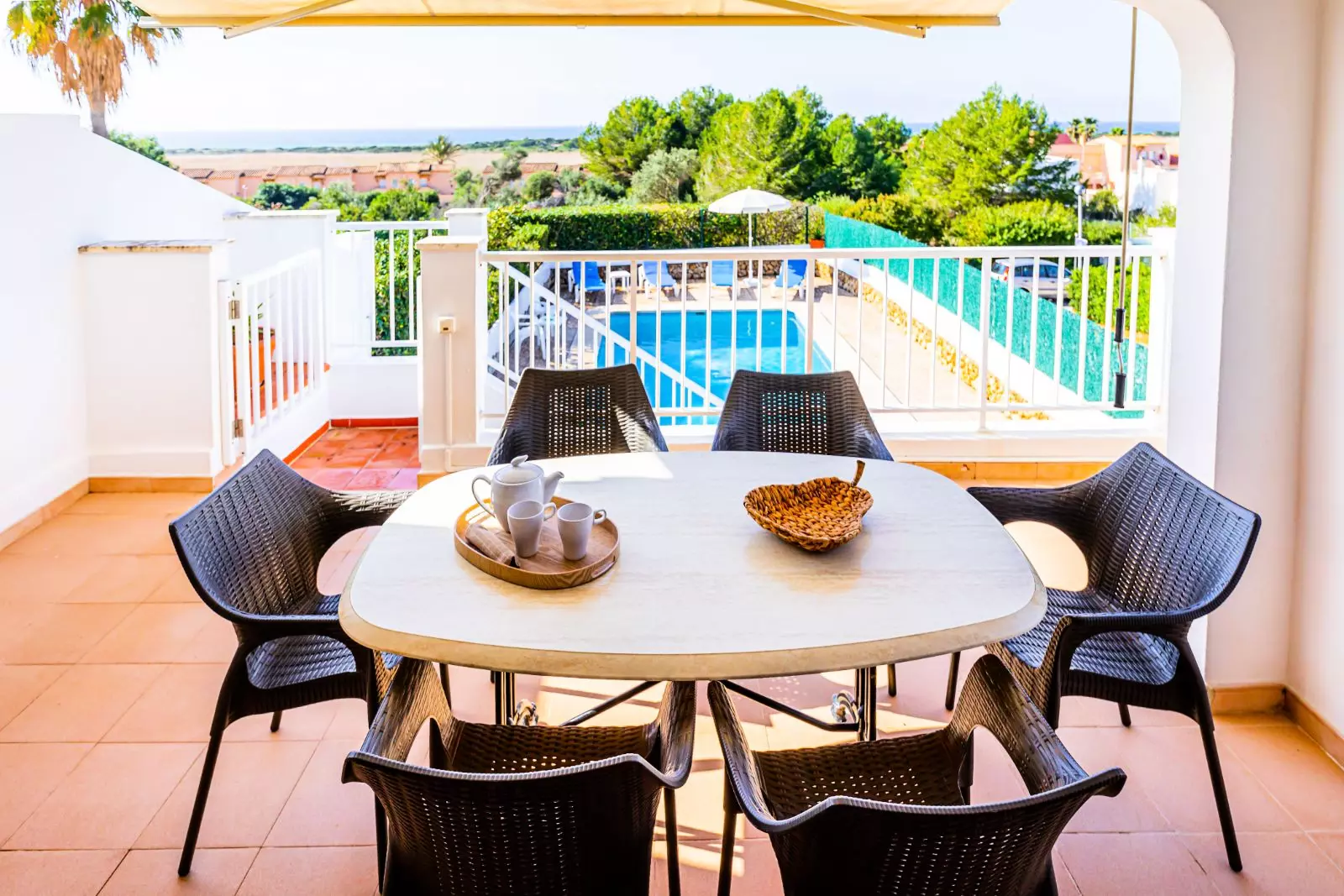 Sa localisation est inégalable, à seulement 2000 mètres de la plage de sable de Son Bou et avec un accès facile aux restaurants, supermarchés et cafés à 1500 mètres. La zone est calme et proche de la mer, offrant des vues spectaculaires qui complètent l'expérience de vacances.
