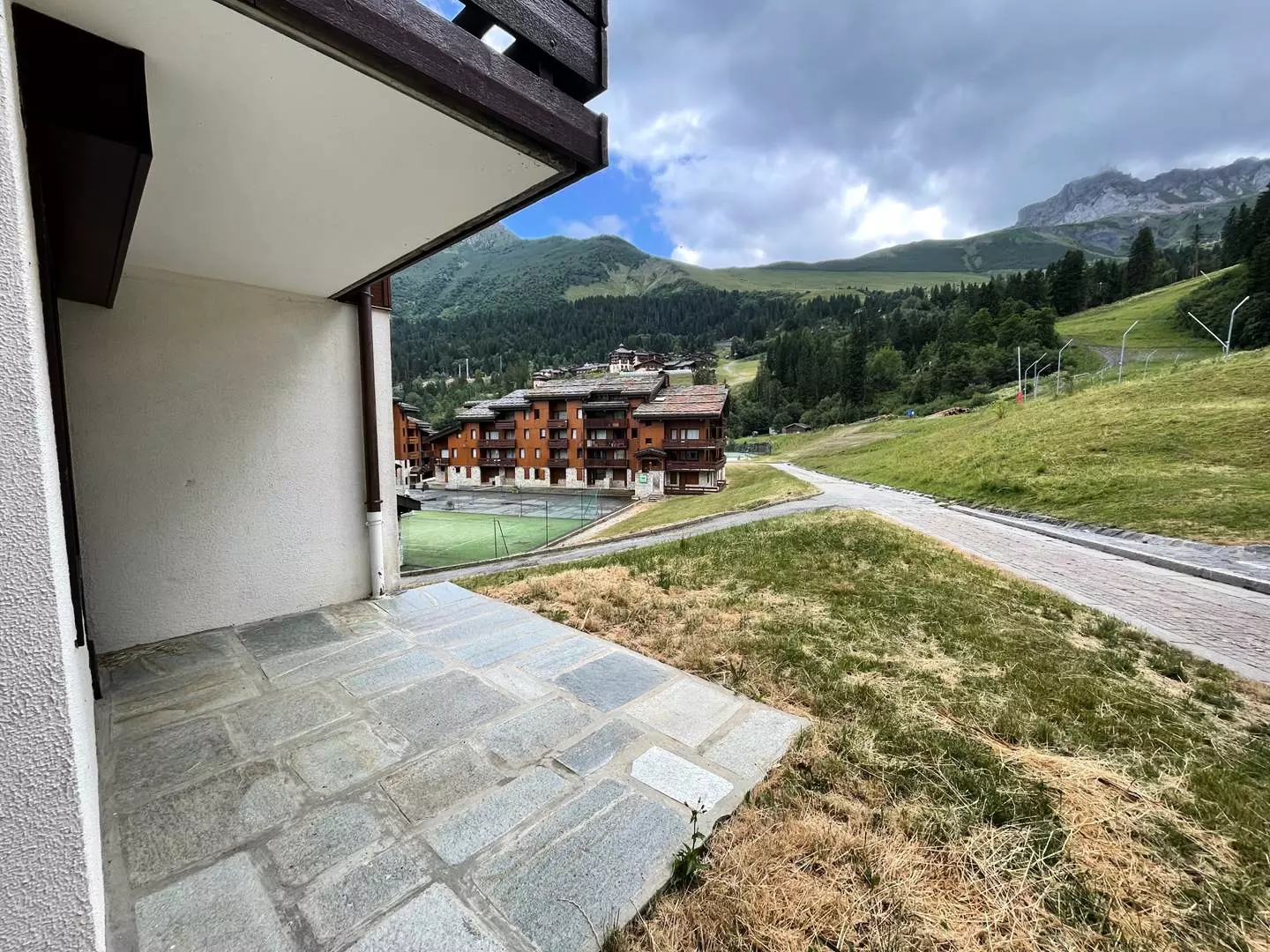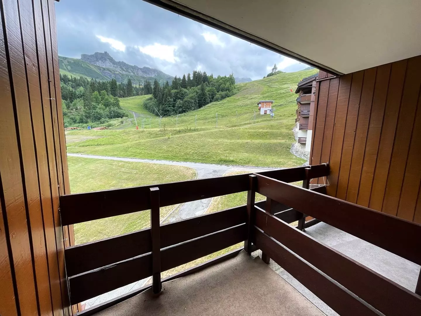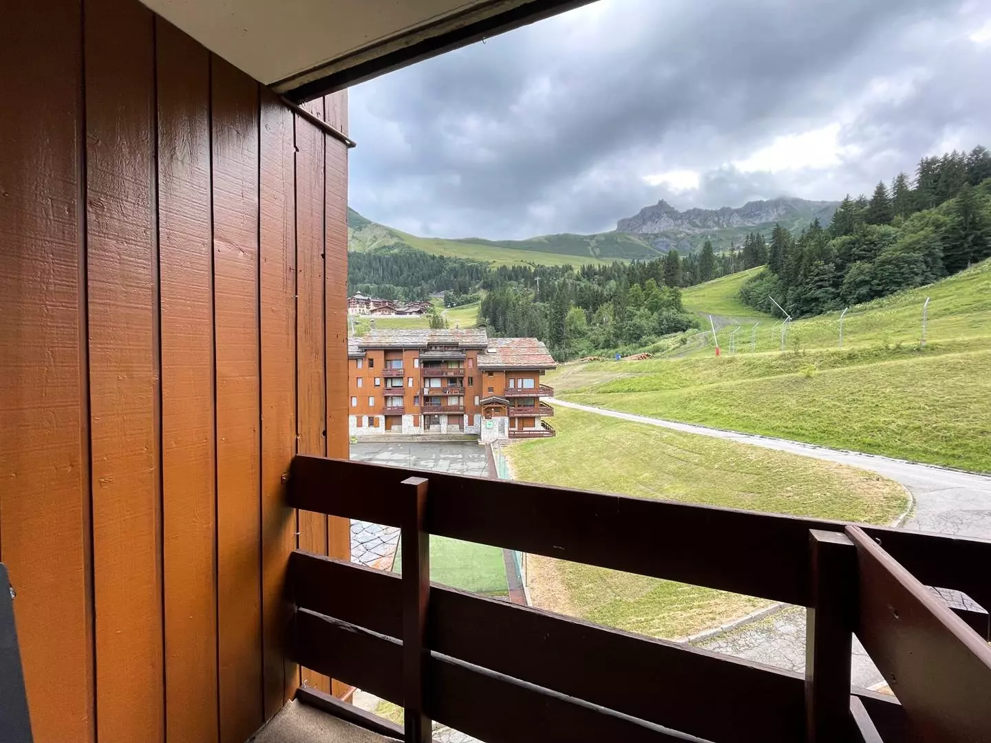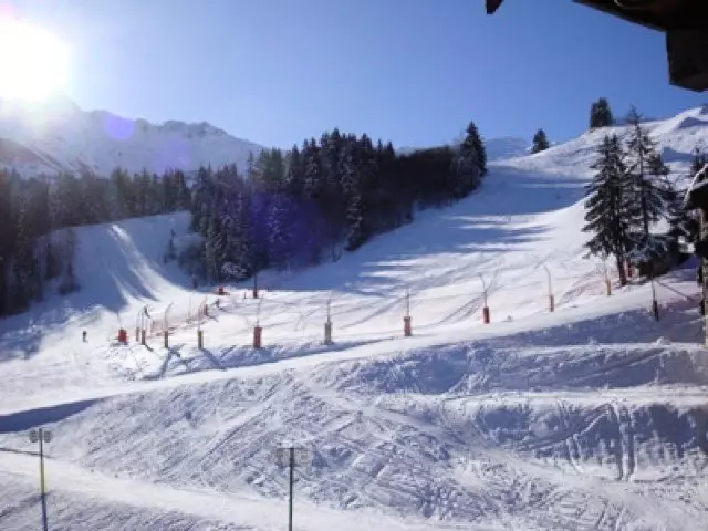 - Balcon avec vue sur la place du Mottet et sur les pistes de Valmorel.