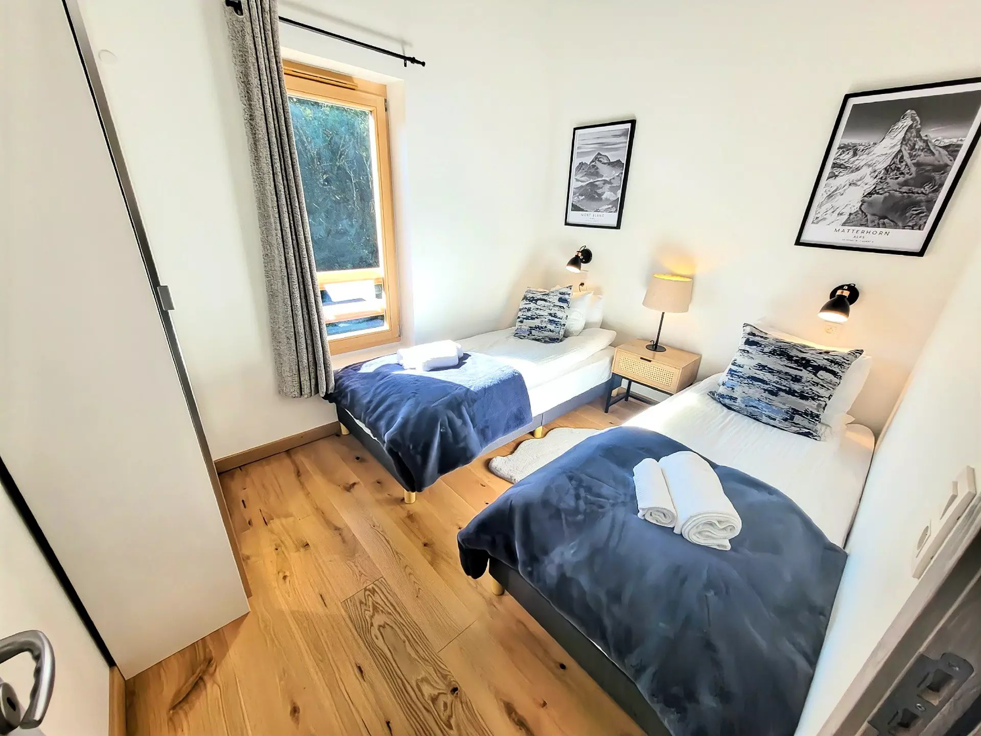 - une chambre équipée de deux lits simples (90 x 200cm) pouvant former un lit double ( sur demande)