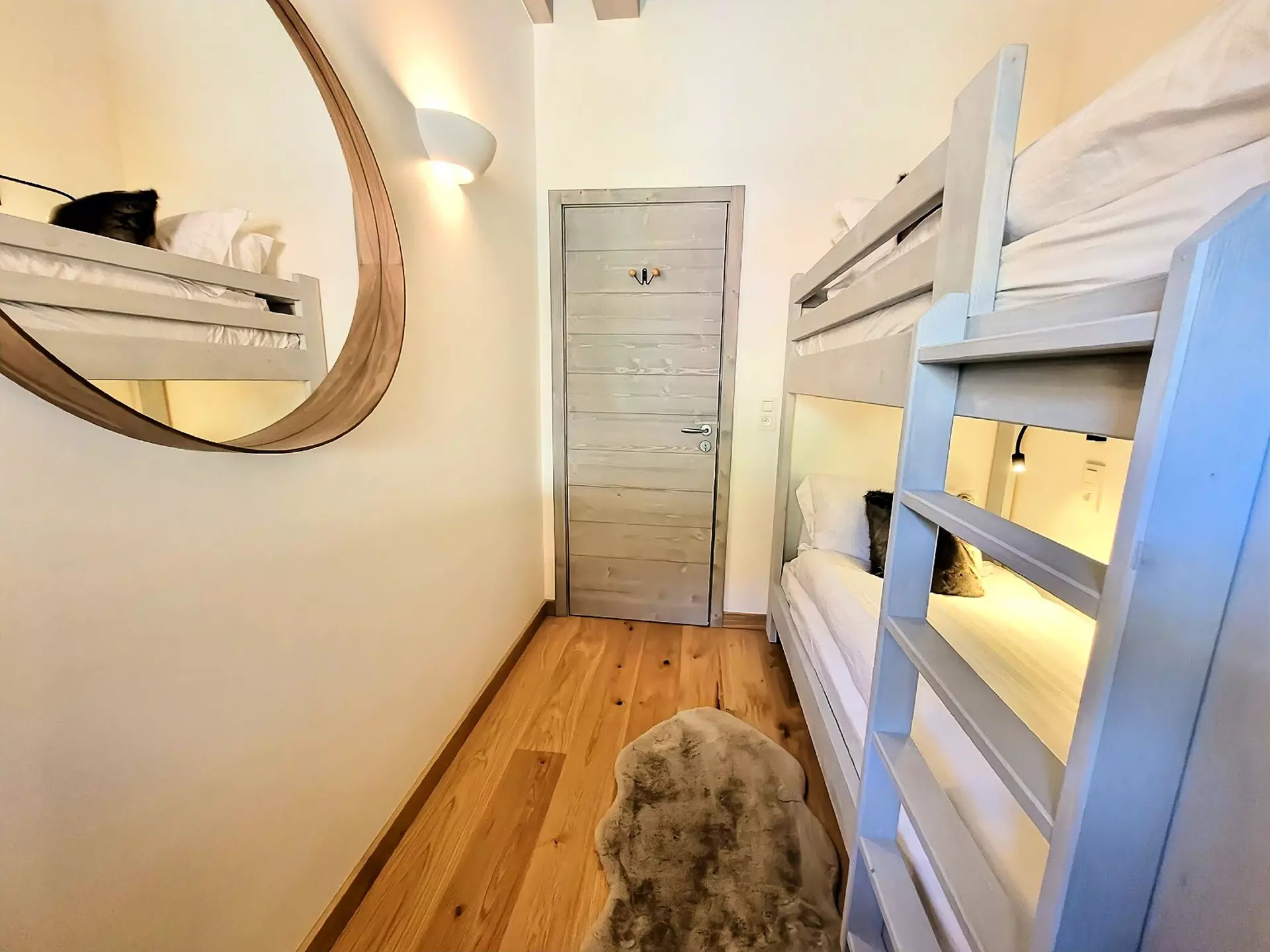 - une petite chambre avec lits superposés (80 x200cm) et rangements.