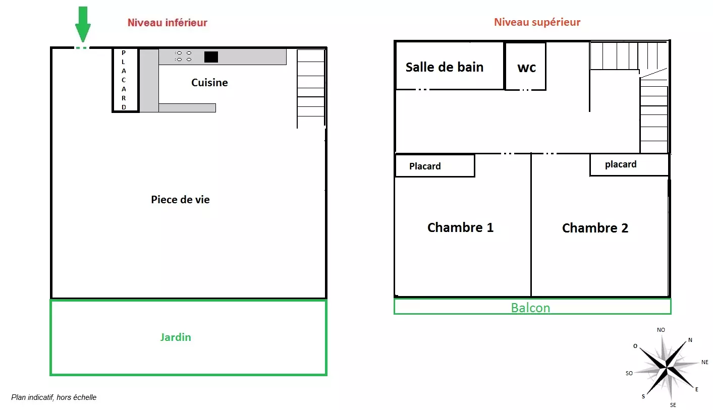 - 1 chambre 1 lit 2pers (140 x 190 cm) avec rangement, accès sur balcon par porte fenêtres