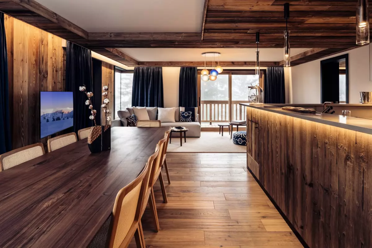 Appartement de luxe ski in/ski out tous services inclus : SPA (piscine, bains à remous, sauna & hammam, etc), bagagiste, voiturier, navette privée pour vous déplacer dans la station et un concierge 7 jours sur 7.