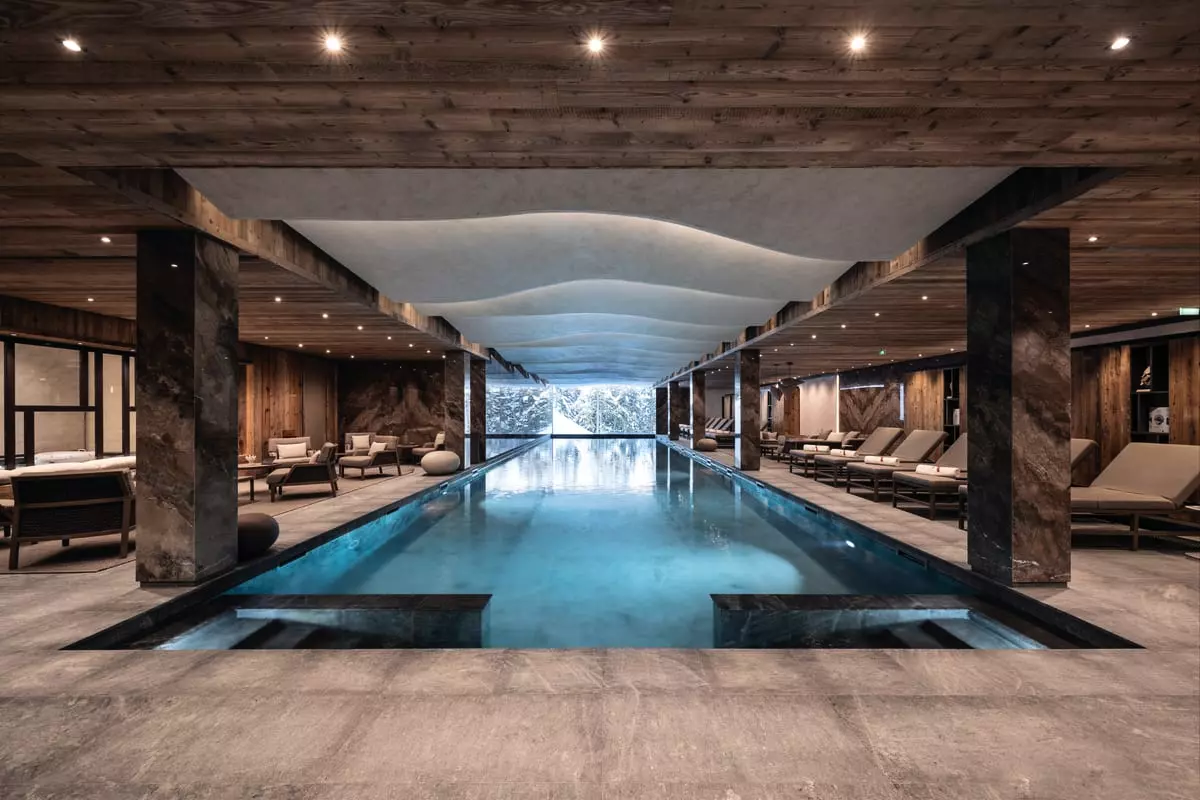 La résidence Antarès Méribel est équipée d'un espace wellness unique : piscine intérieur de 25m, bassins multi-températures, une grotte de sel, sauna & hammam, clinique esthétique, fontaine de glace, 10 cabines, des cocons de repos privatifs, une Tisanerie des alpes et une cryo suite.